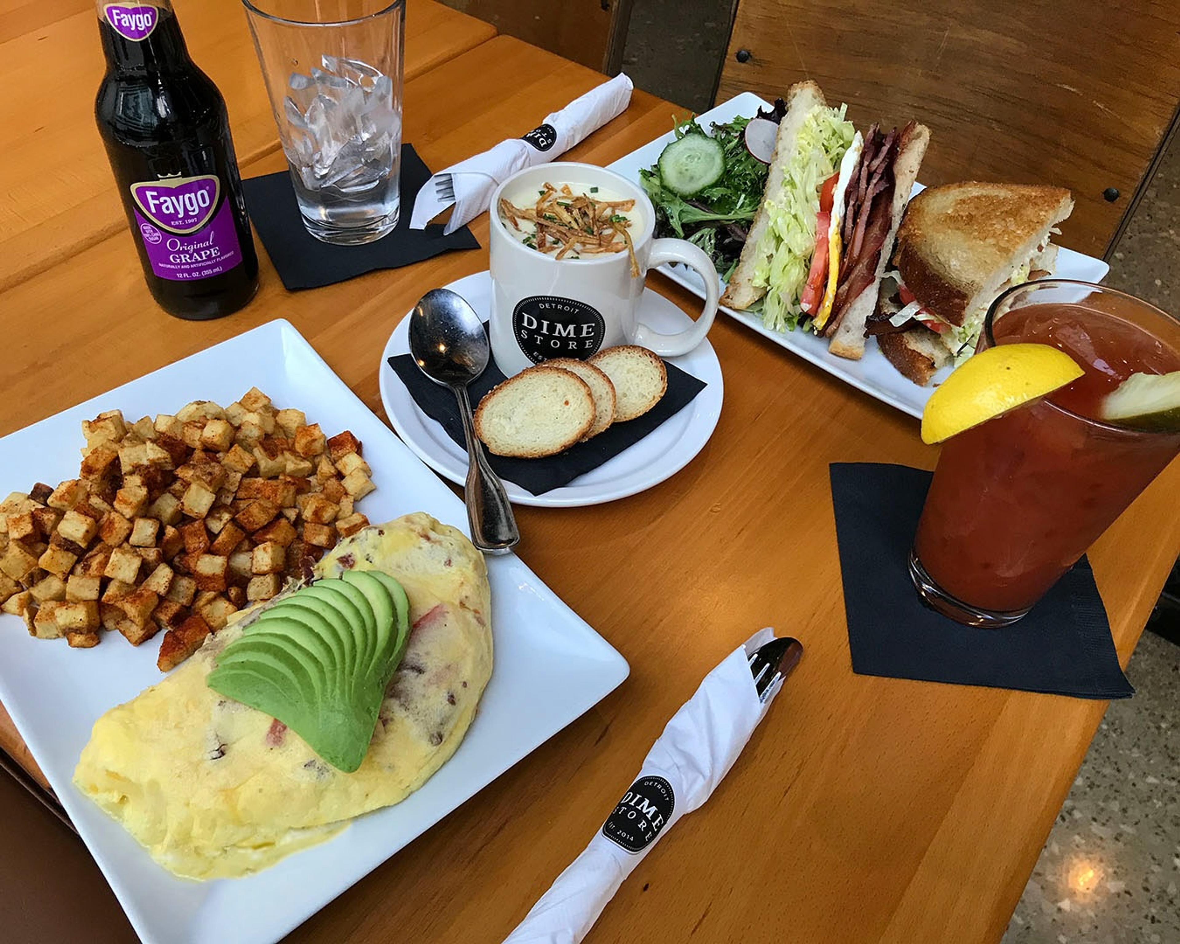 Dime Store’s scratch-made breakfast, lunch, brunch, beer, wine and cocktails can be had inside of downtown Detroit’s Chrysler House building.