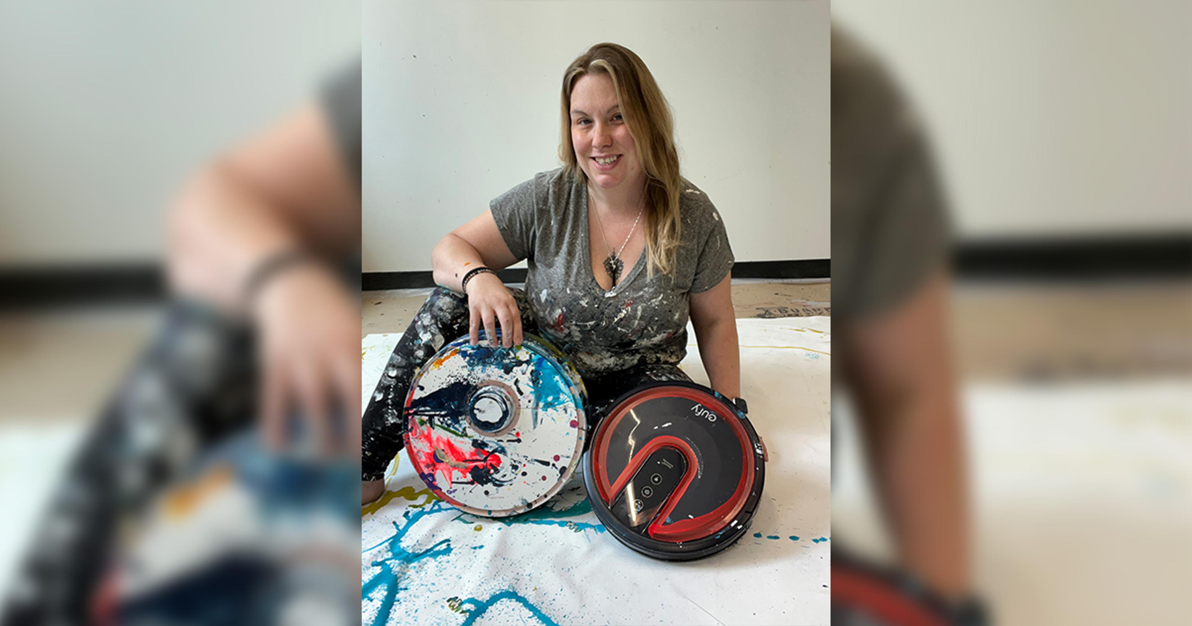 By attaching different materials and objects to the vacuum, Koss manipulates its movements and transforms it into a dynamic instrument. Beyond its aesthetic impact, she hopes the use of a robot vacuum in art production raises thought-provoking questions about the role of automation and technology in society.