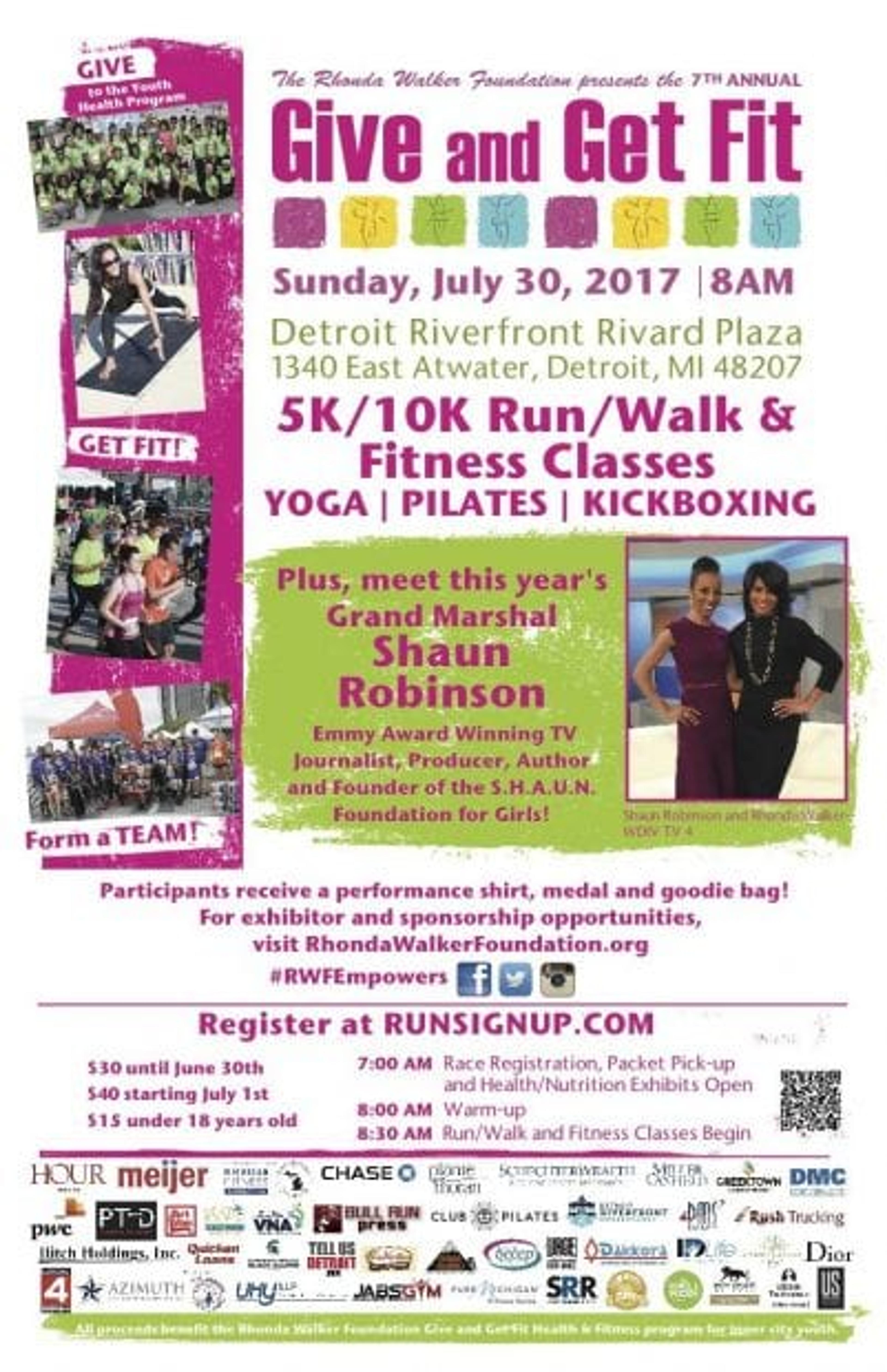On Sunday, July 30, 2017, the bright blue hue of the Detroit Riverfront will be speckled with green. Over 500 health-conscious metro-Detroiters are expected to slip into their green t-shirts and participate in Give and Get Fit: a fun-filled morning of health and fitness hosted by the Rhonda Walker Foundation and sponsored by Blue Cross Blue Shield of Michigan.