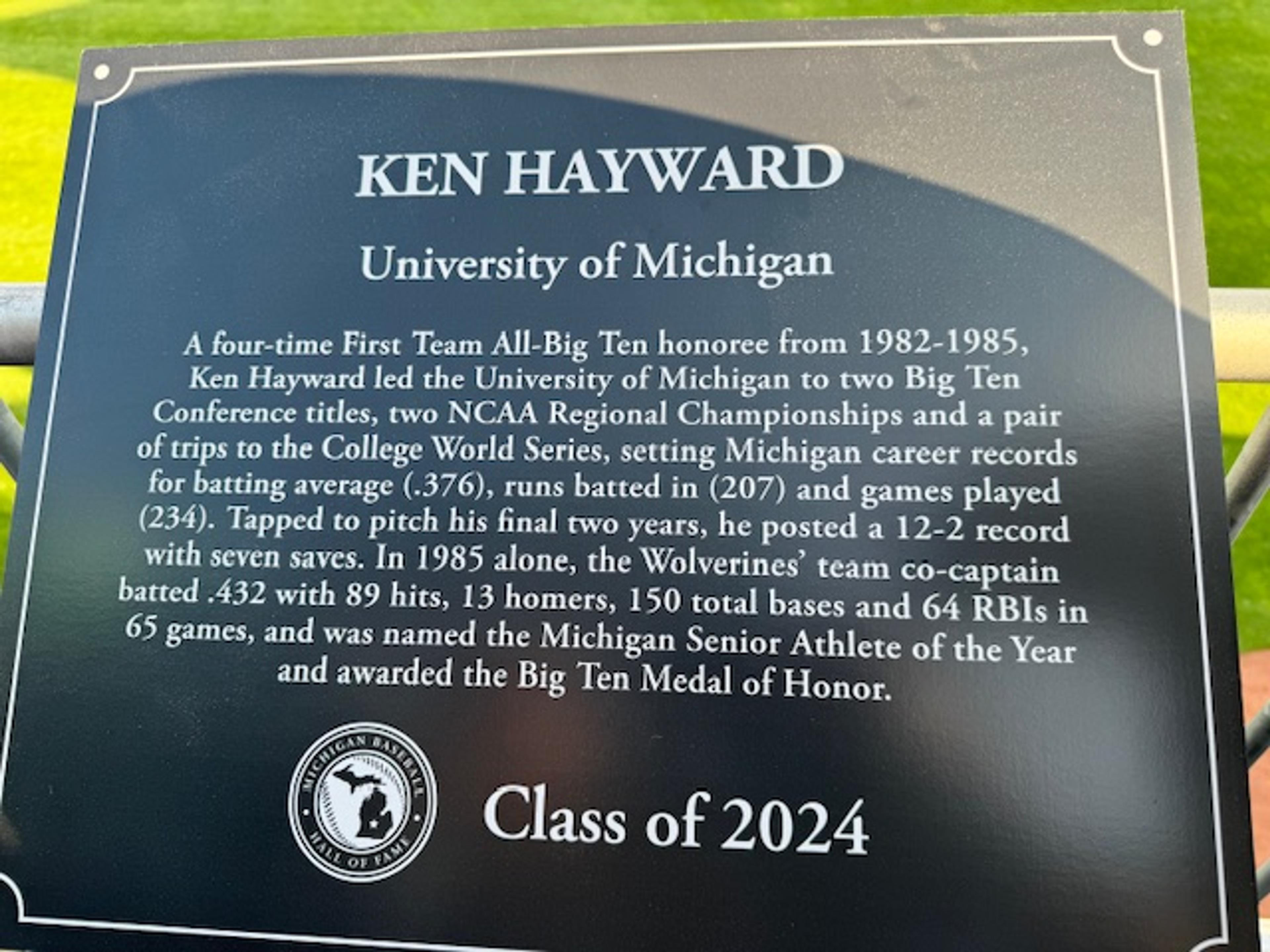 “Baseball – and being good at baseball, thankfully – opened the door to go to the University of Michigan. It opened the door for me to get a degree. I met my wife at Michigan, she has two degrees from there. My daughter went to graduate school there. My son went to school there. We became true blue people,” Hayward said. “Baseball opened those doors for me and then it opened the door for me with my degree to have a professional career.”