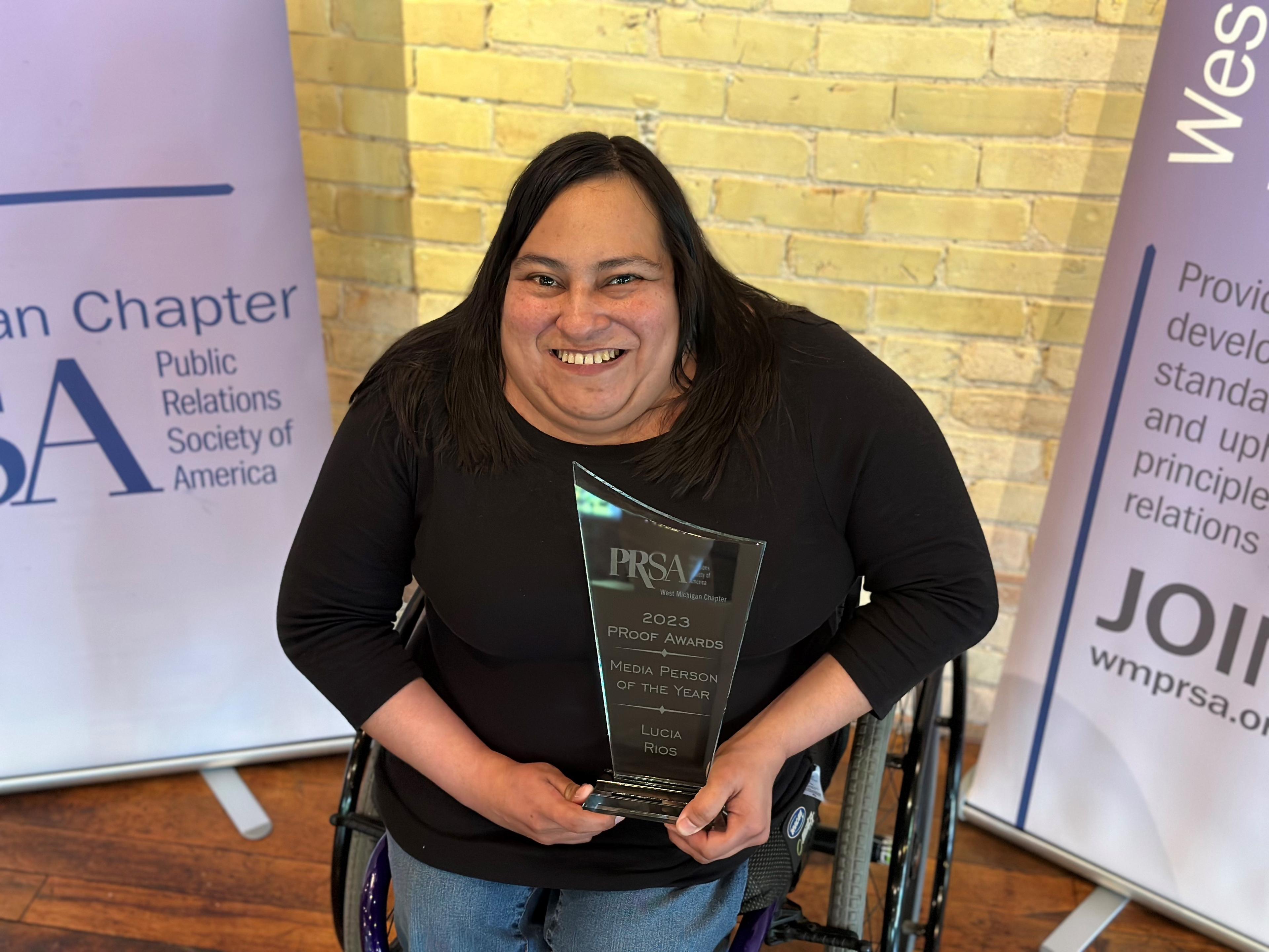 Navigating campus with her wheelchair, Rios found herself becoming an advocate for herself and for others with disabilities: broken elevators, broken sidewalks and snowy or icy winter walkways were in the way of her education and ability to attend class. After graduation, she found a job working in the disability field at a nonprofit in Holland. Her passion for advocacy and inclusion continues today, as she works for Salesforce as a workforce navigator, helping individuals with disabilities who are looking to enter a career with the company.