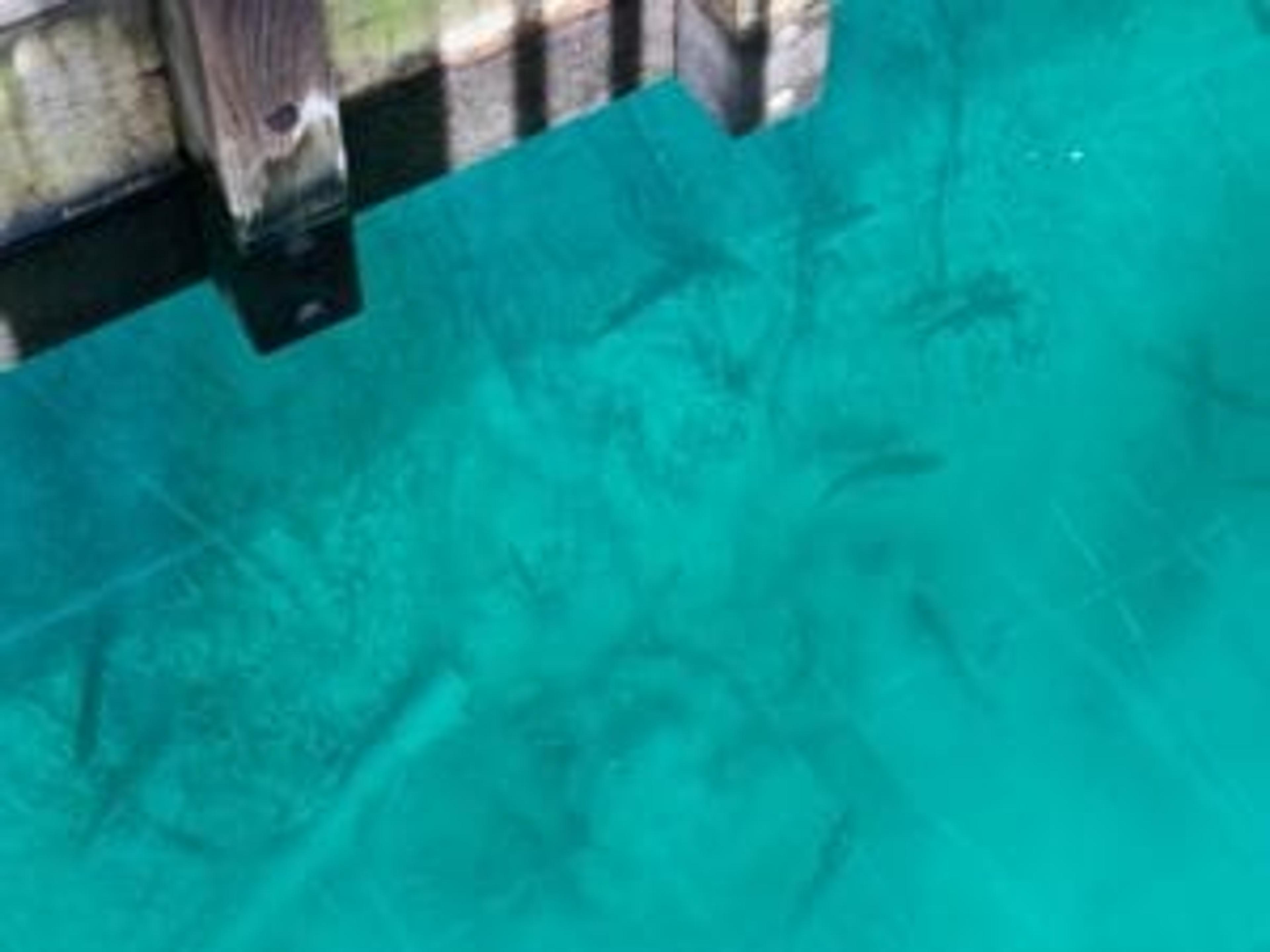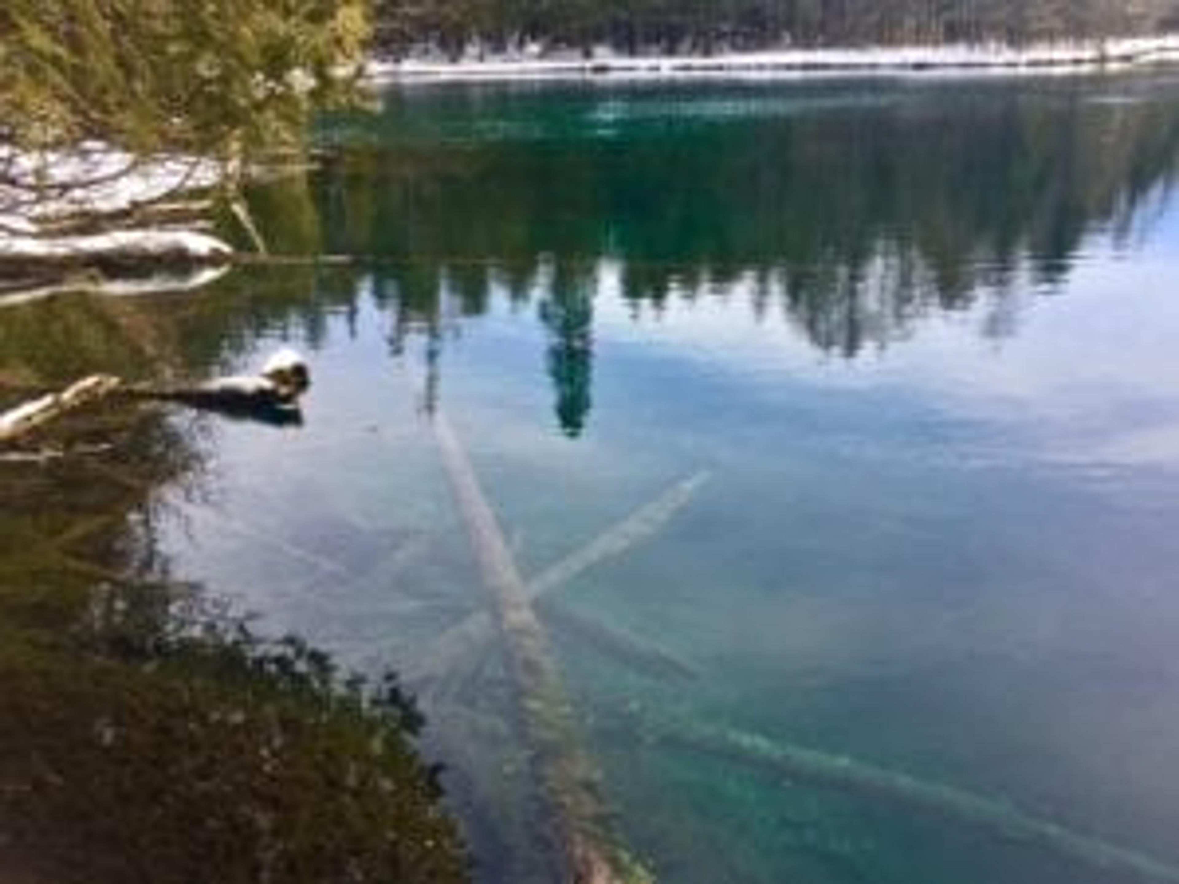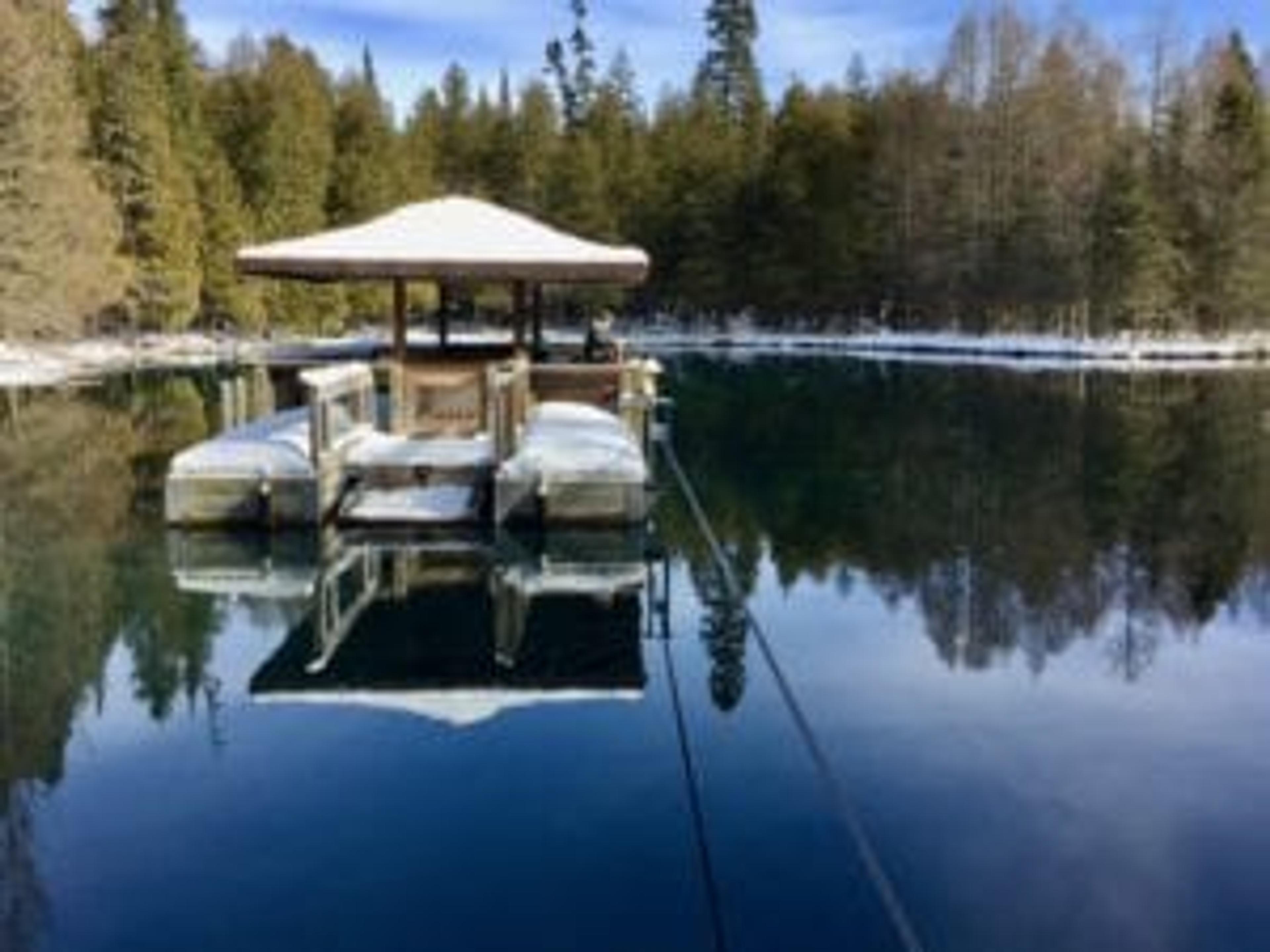 Clear, jewel-like aquamarine water holds steady at 45 degrees Fahrenheit year-round, its color a result of high sulfur content. Through the opening in the raft, you can see the spring beneath you, stretching down to depths of 45 feet. Highly pressurized water gurgles up at more than 10,000 gallons per minute. As you make your way to the far shore of the 300- by 175-foot pool, giant lake trout swim slowly back and forth.