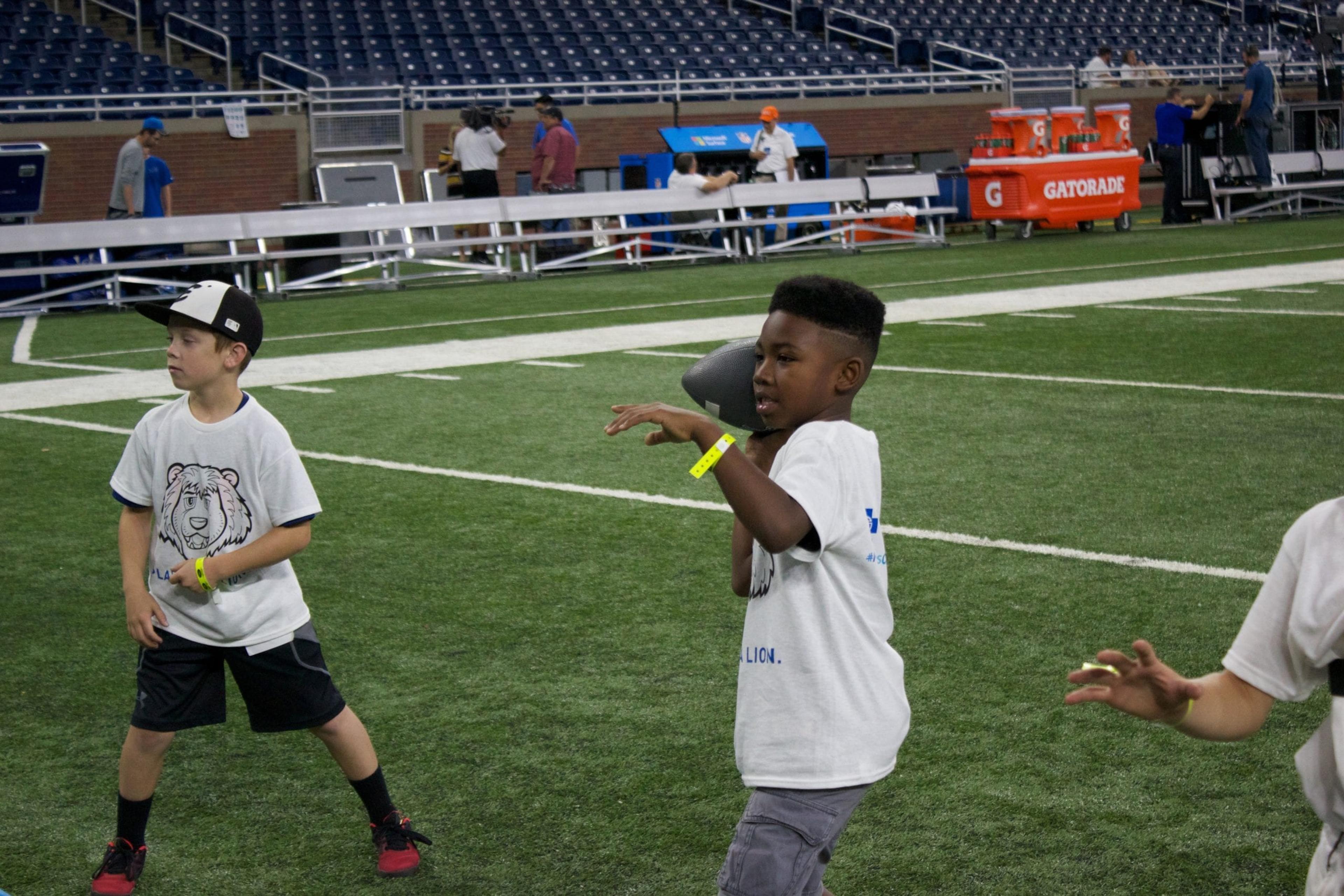 As our August #MIKidsCan Champion of the Month, Xavier received the opportunity to participate in a once-in-a-lifetime opportunity with the Detroit Lions. He tackled a 60-minute on-field workout with Lions’ trainers and mascot, Roary, and met players Matthew Stafford and Golden Tate. He also got to stand in the “fan tunnel,” where Lions players rushed onto the field prior to taking on the Cincinnati Bengals. His favorite part of the day was catching a football in the end zone.