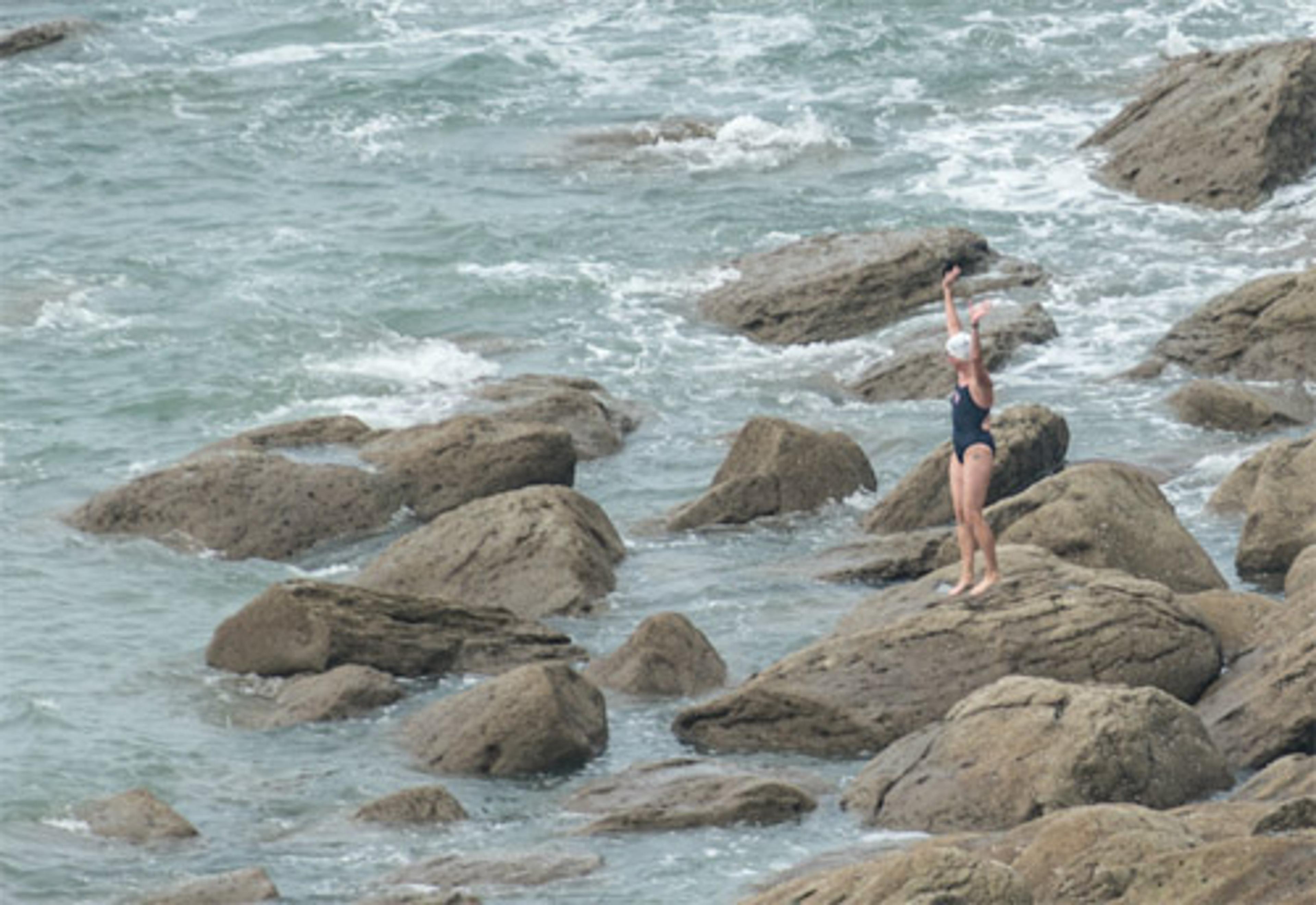 Bethany Williston stands on the rocky shore of France.