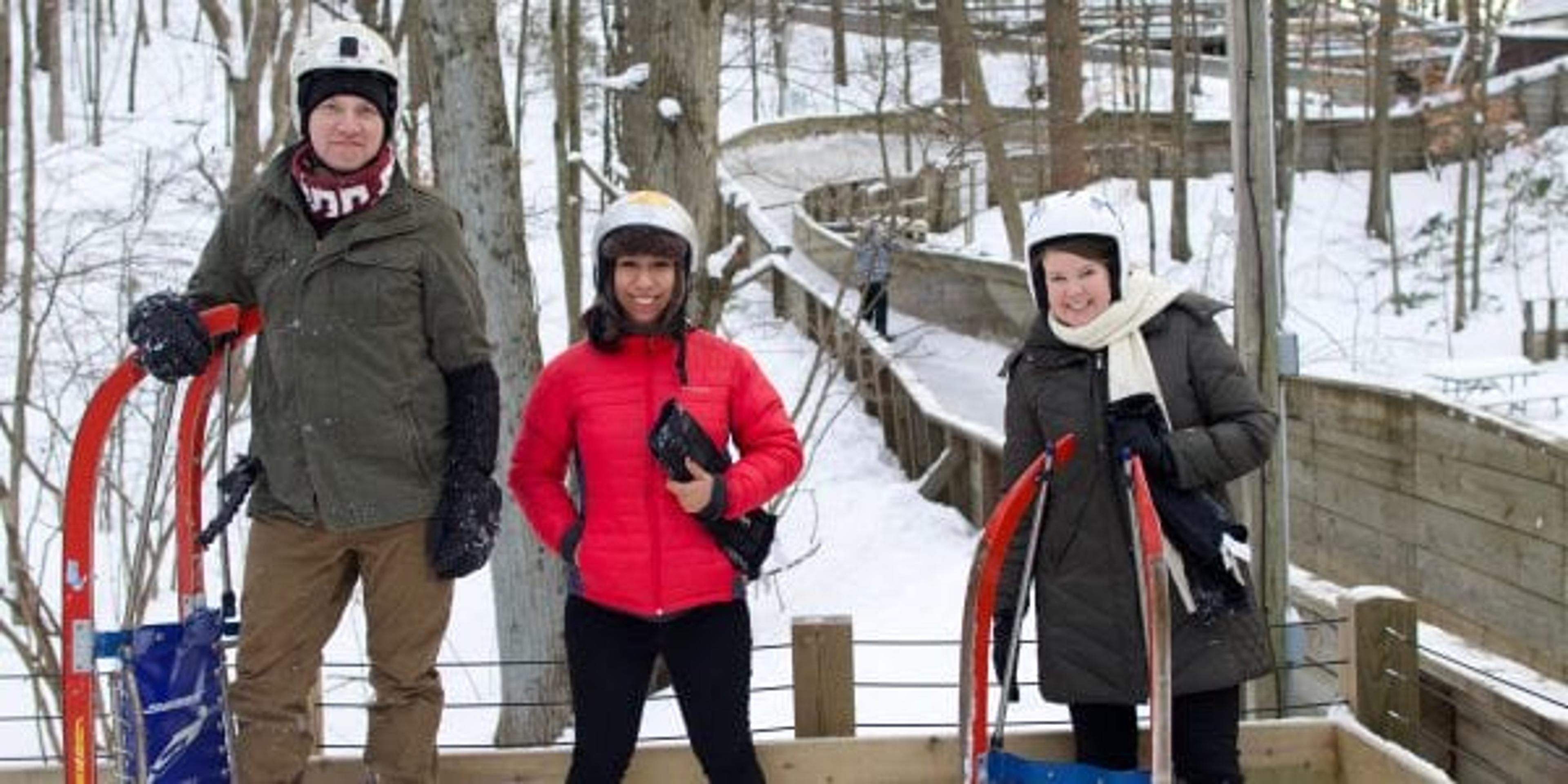 Members of the A Healthier Michigan team getting ready for their trip down the luge.