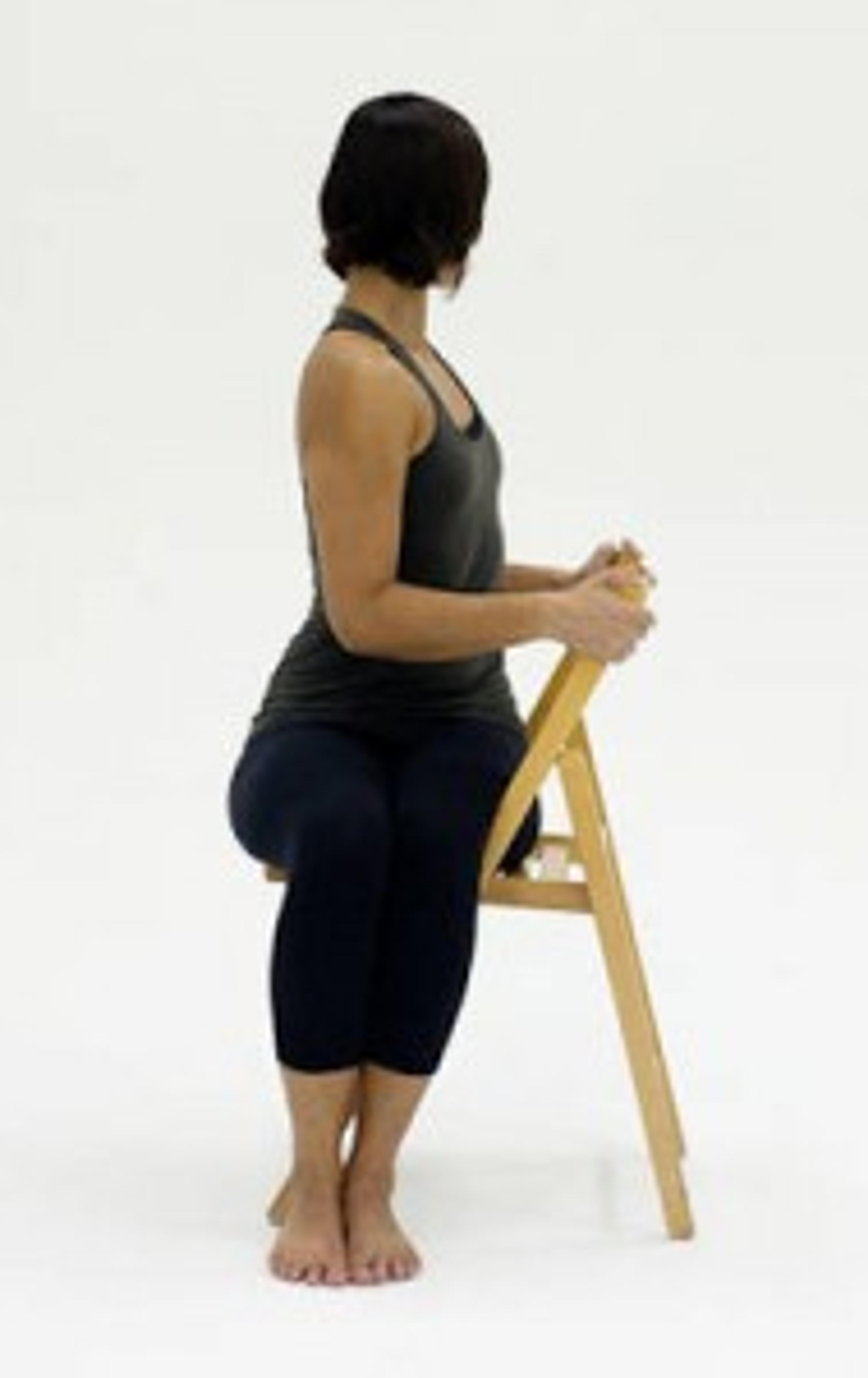 - Place your hands in a comfortable position on the back of the chair for extra leverage.