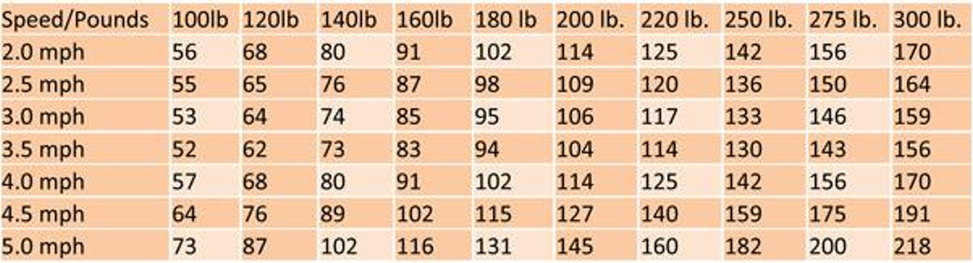 The calories you burn will depend on your current weight, the intensity at which you are walk and the distance. The chart below lists calories burned per mile by weight.