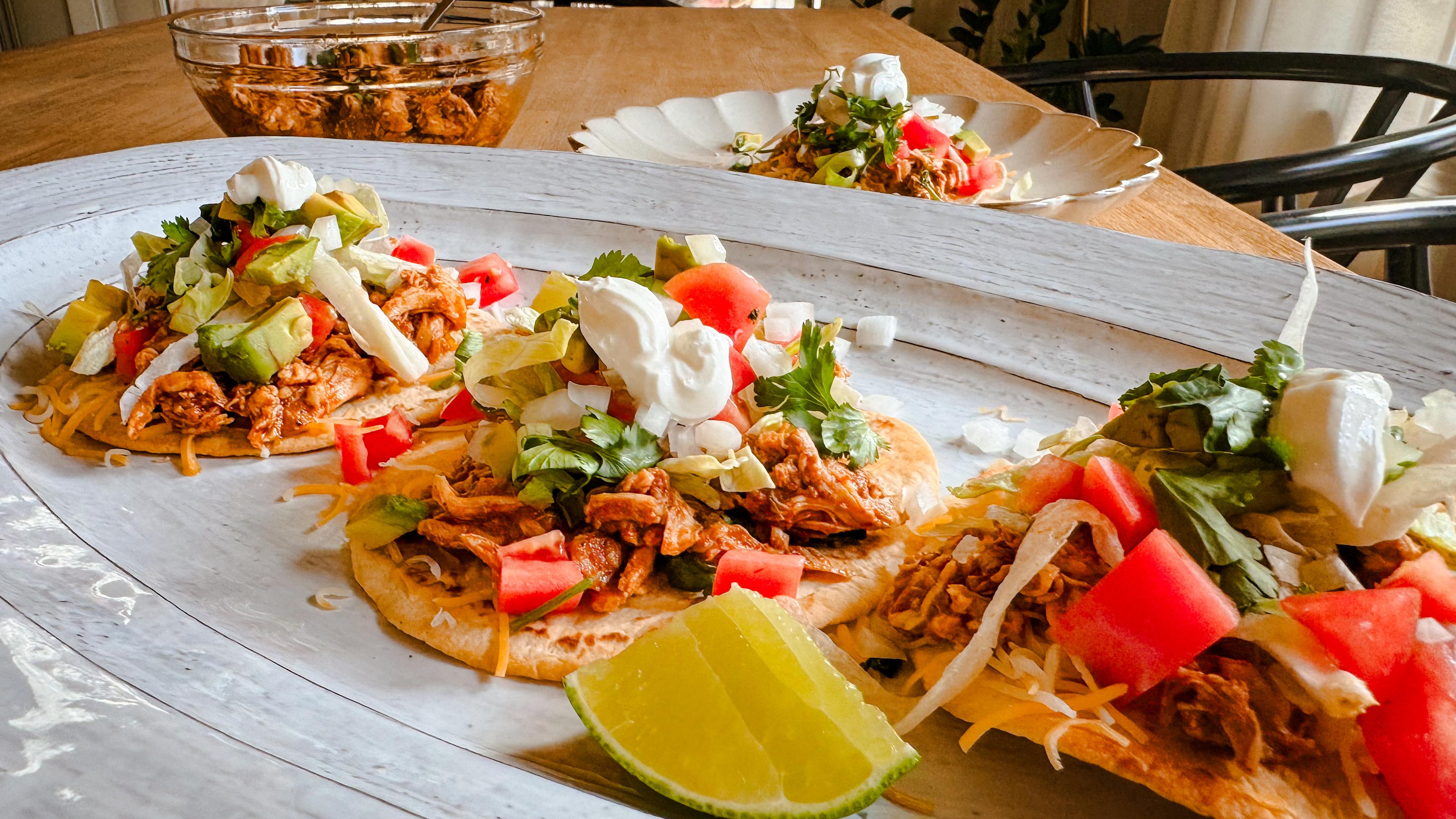Tostadas are a popular Mexican dish consisting of crispy tortillas topped with various ingredients. In this recipe, lean chicken breasts get tossed in a rich marinade made of traditional Mexican spices. Layered on a crispy baked tortilla and topped with fresh lettuce, tomatoes, avocado and other fresh ingredients, these chicken tostadas are a healthier twist on a classic favorite.