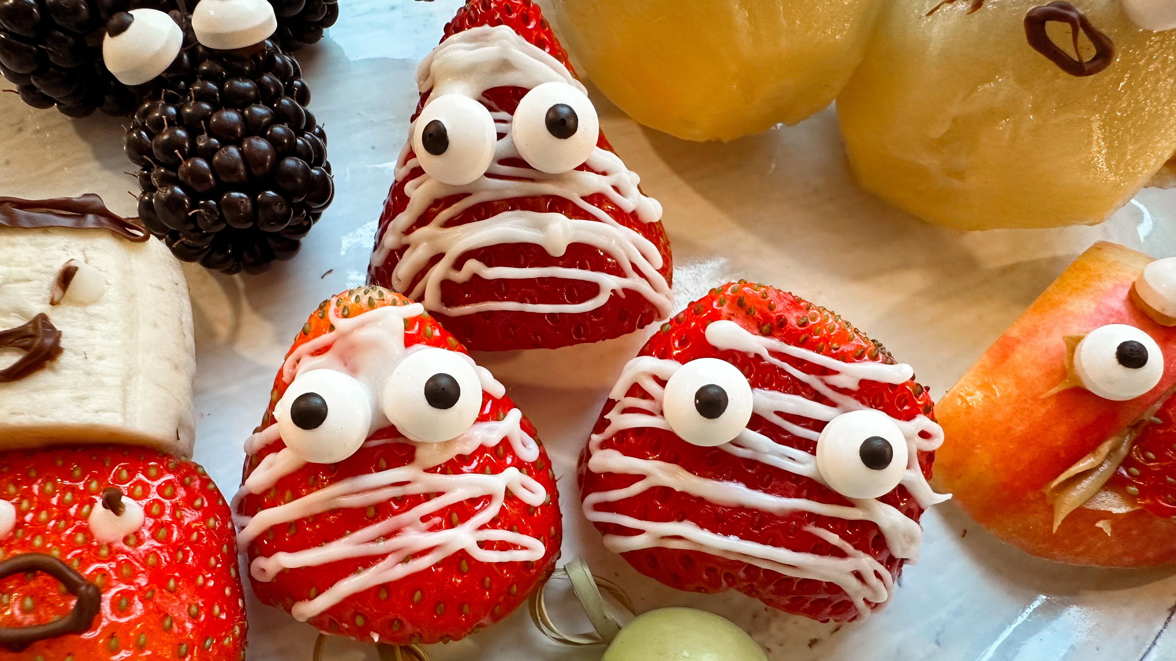 It’s the time of year when pumpkins and mums fill porch steps. Leaves fall gently in the crisp air and line the sidewalks with red, pink and orange hues. Cooking gets more cozy. Kids dress up in costumes for school and trick-or-treating alike. It’s also when grocery aisles are dedicated to Halloween candy. While it’s okay to enjoy hard-earned candy from trick-or-treating on Halloween, it’s nice to partake in activities to take the focus away from candy. Try a few of these spooky treats using fruit: