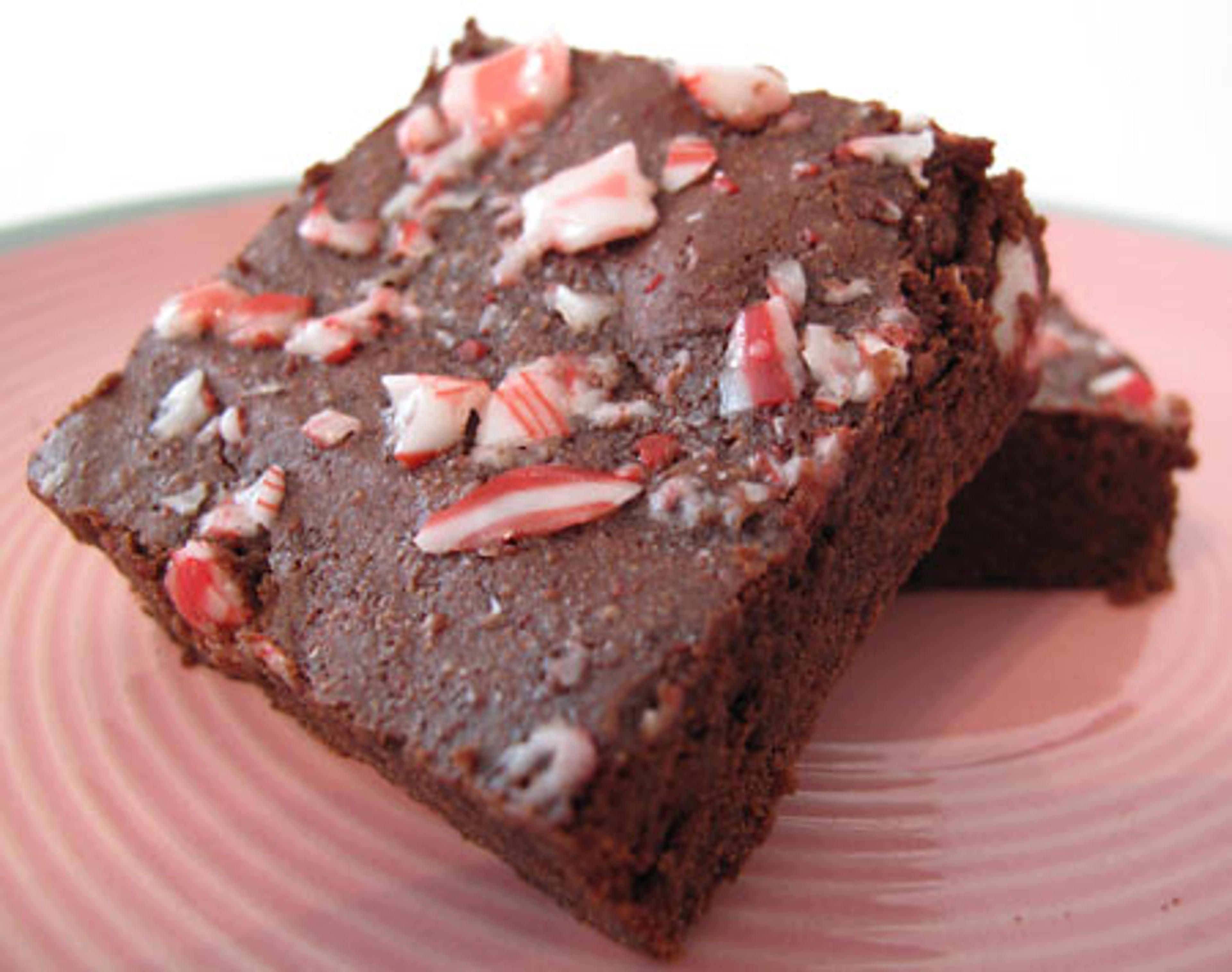 Here is another recipe that also includes chocolate and candy canes, one that is sure to be a hit with your family as well as mine. Let me know what you think of these peppermint brownies, which originally appeared in Cooking Light. The recipe serves 12 people at 294 calories per serving.