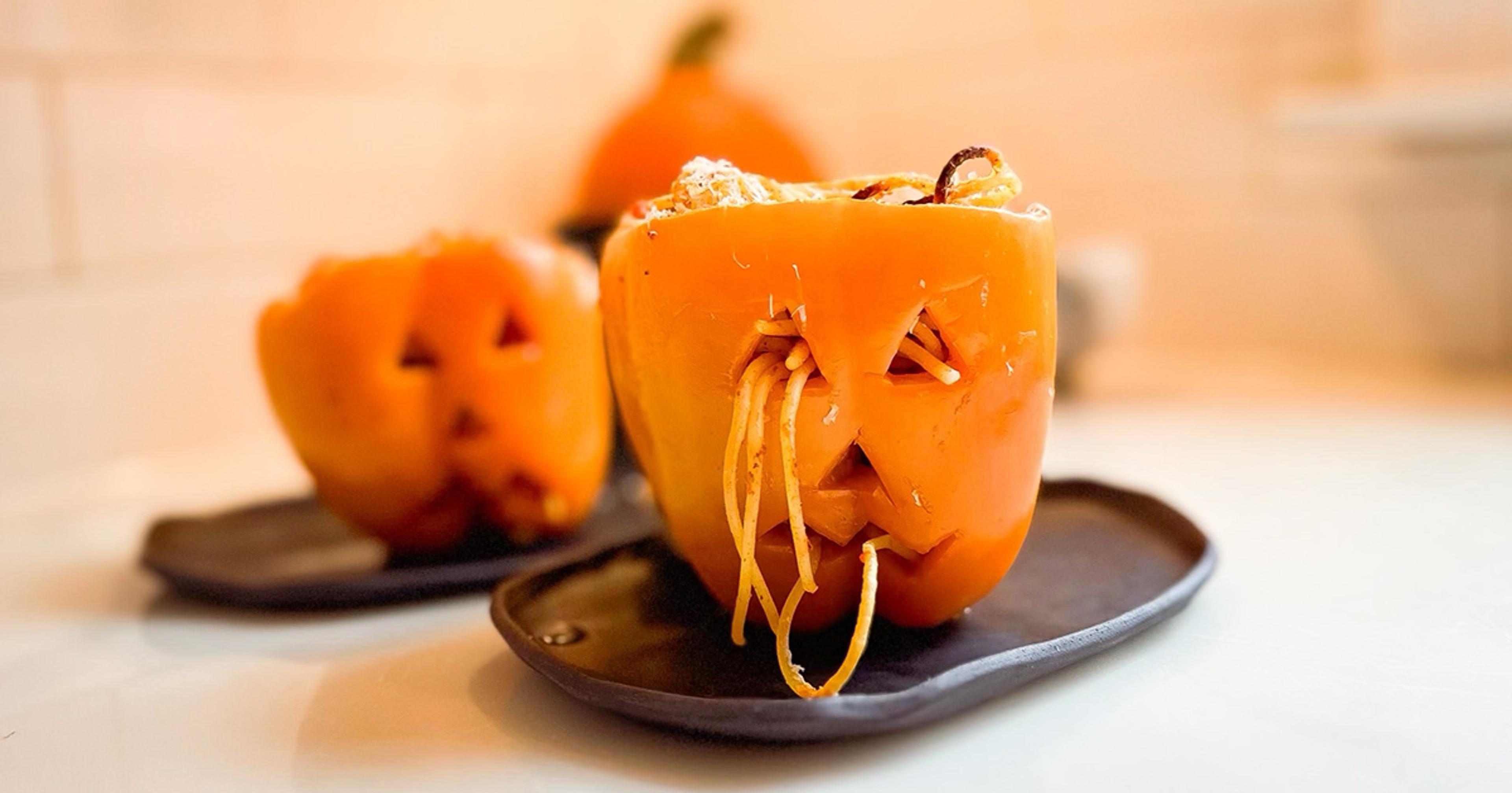 From the classic Jack-o’-lantern design to witches, many families enjoy pumpkin carving during this spooky season. In this dinner idea, kids can play with their food. Simply cut off the top and carve out the inside of an orange bell pepper. Next, use a paring knife to cut out the shape of a jack-o’-lantern on the side. Next, fill with your favorite filling such as spaghetti with a veggie-rich sauce made with ground chicken, pasta salad or a Tex-Mex spiced filling. Using spaghetti can add an element of gore. Simply use food tweezers or a fork to pull out spaghetti strands from the mouth to represent maggots.