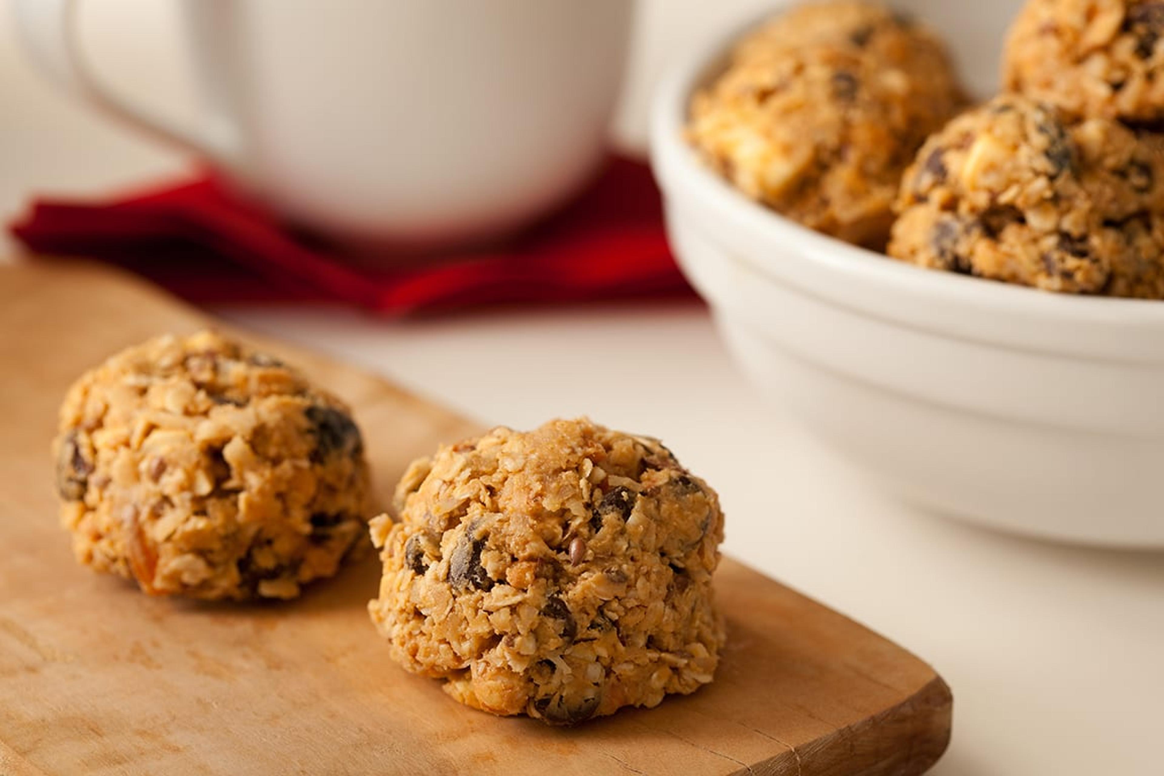 Now test the consistency: If it sticks together, you are ready to make your cookie bites. If your batter is too dry, then add some more peanut butter or honey. If it is too wet, add some more oats or flax seed.