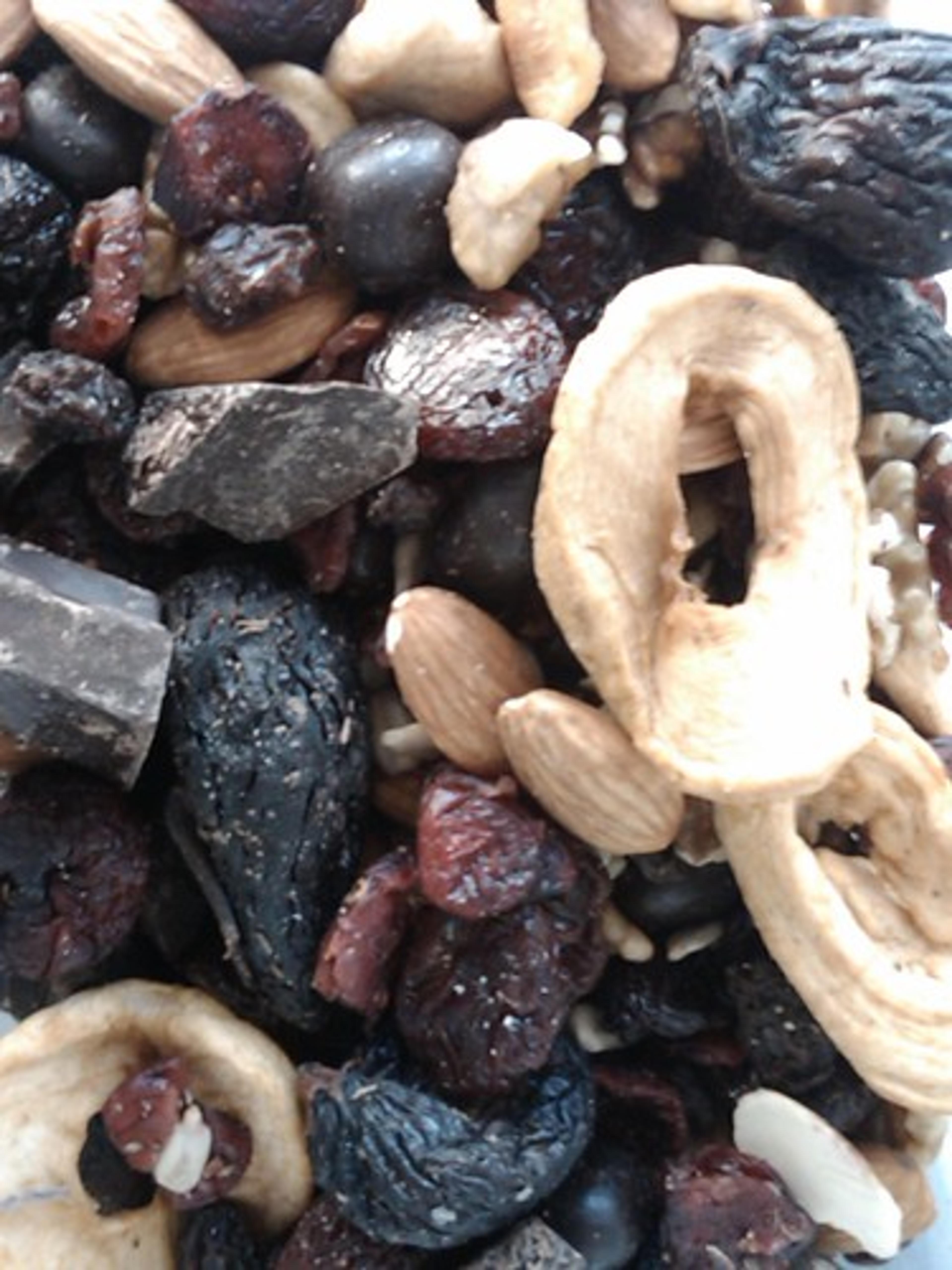 • Sweets. Dark chocolate is a favorite ingredient for many and the good news is “It’s good for you too!” Another suggestion is yogurt-covered fruits. Please remember that that these things melt so if you’re taking your trail mix somewhere warm and you don’t want it to be messy then you should skip these items in your trail mix.
