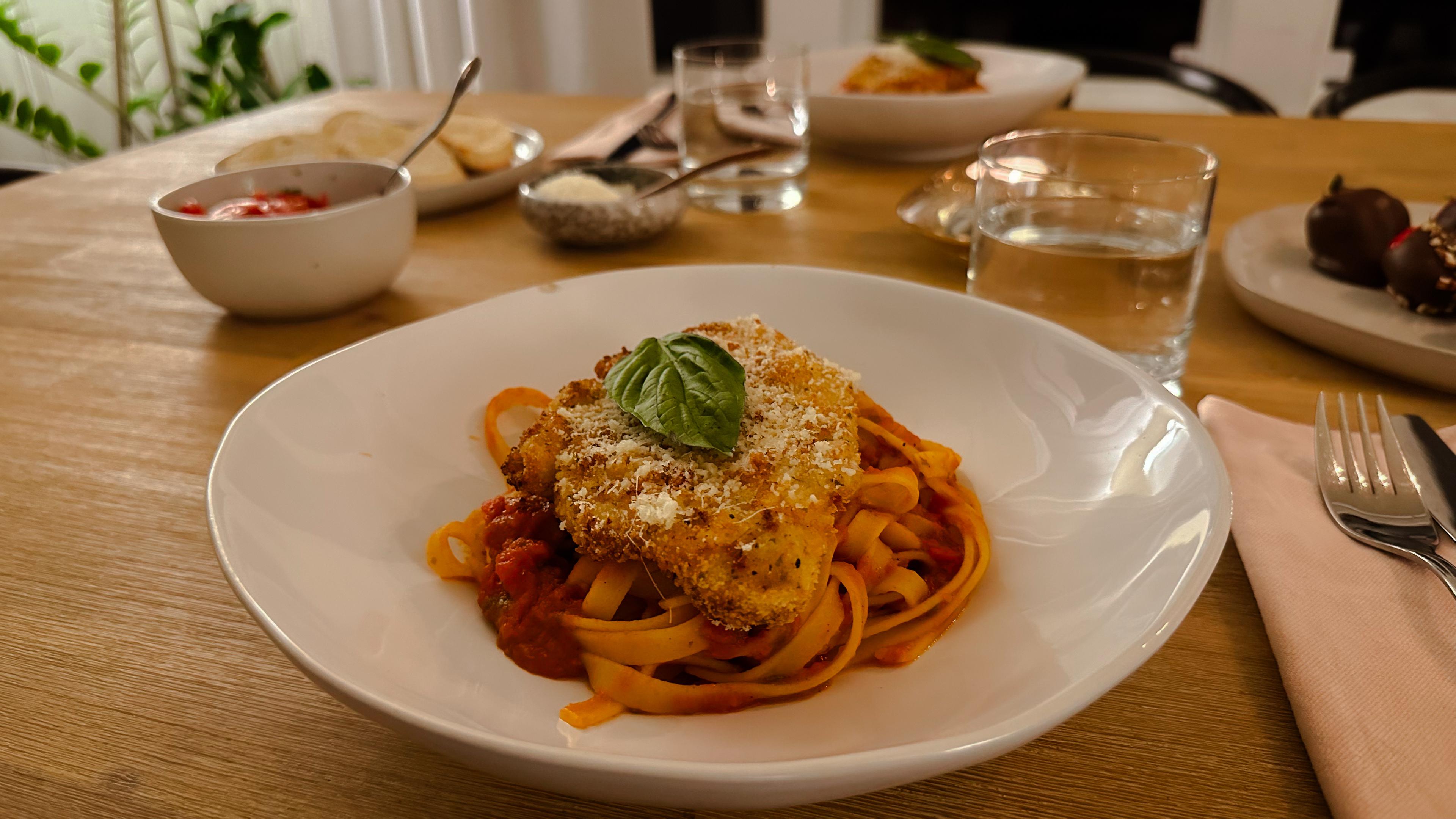 After flipping the chicken breast once, spoon marinara sauce over each chicken breast and sprinkle with shredded mozzarella. Once the cheese is melted and bubbly, remove the chicken from the air fryer and let it rest for a few minutes before serving.