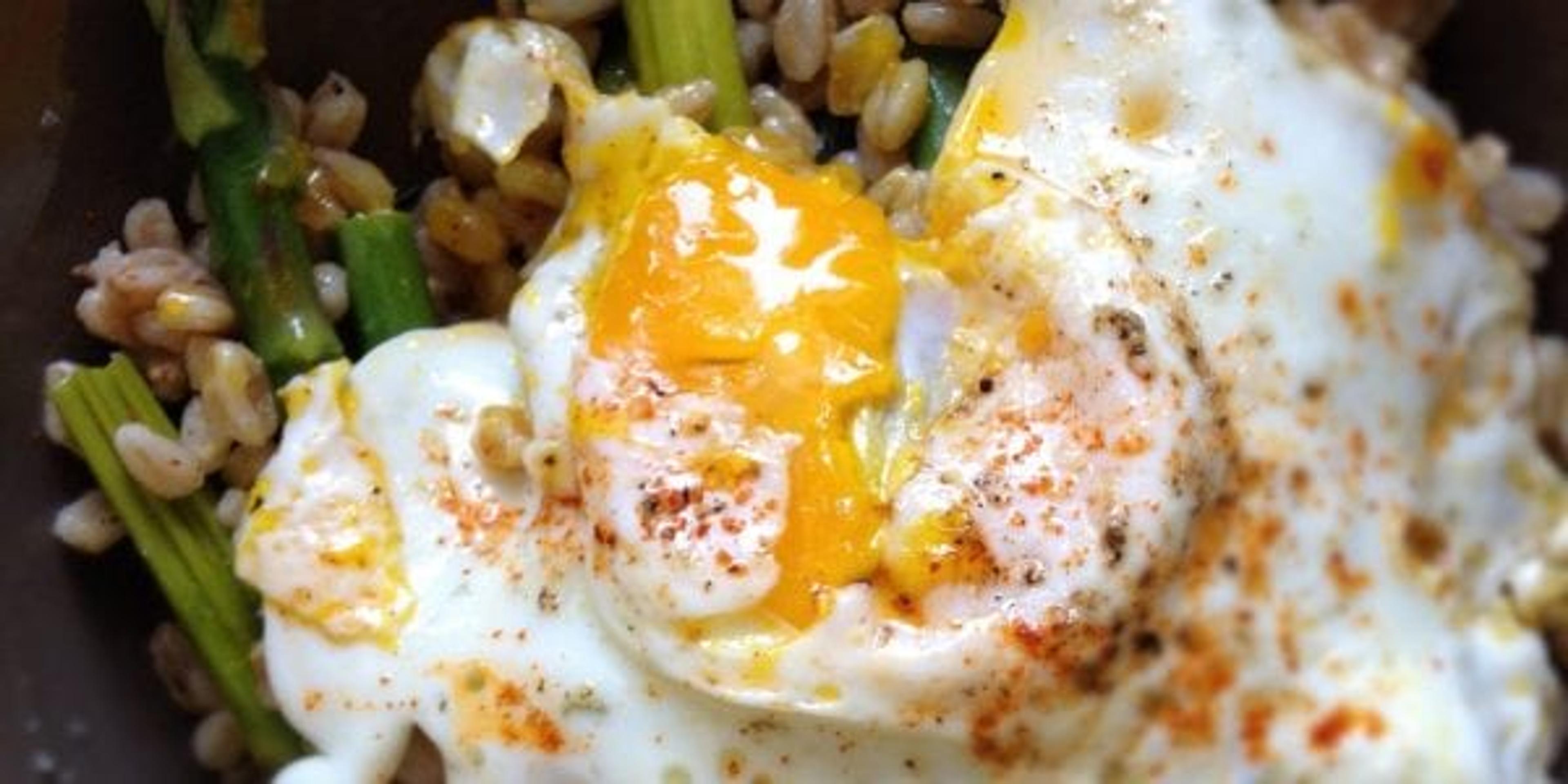 Farro with egg and asparagus (pictured) Start your day right with this hearty breakfast, which has a base of filling farro!