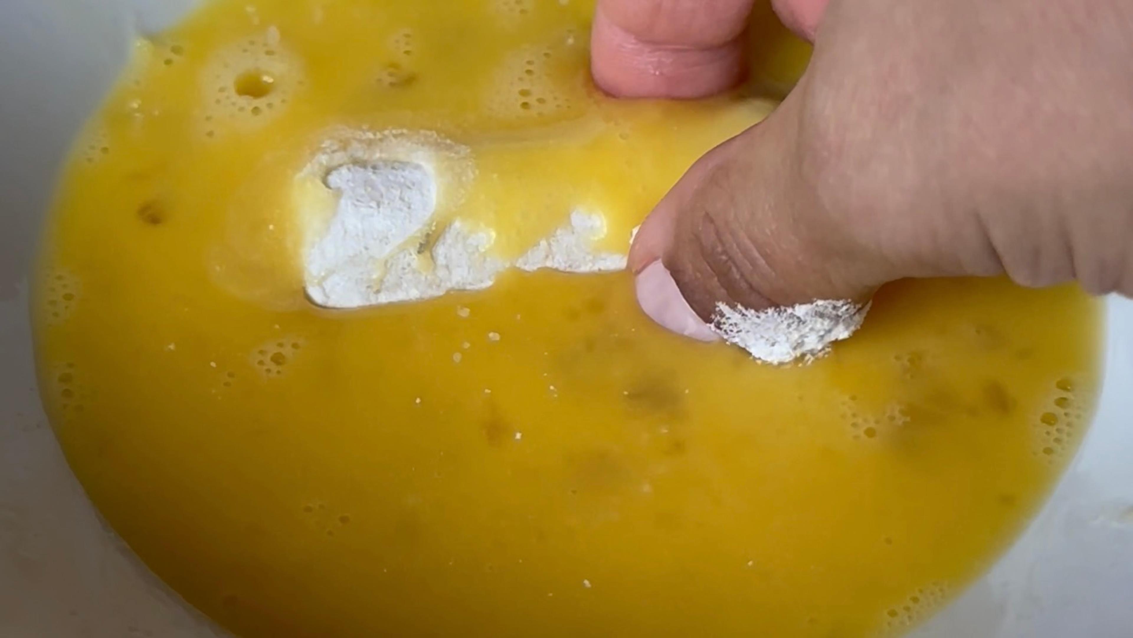 Dip into egg, then press into bread crumb mixture. Dip into egg again and press into bread crumb mixture again to form a crust.