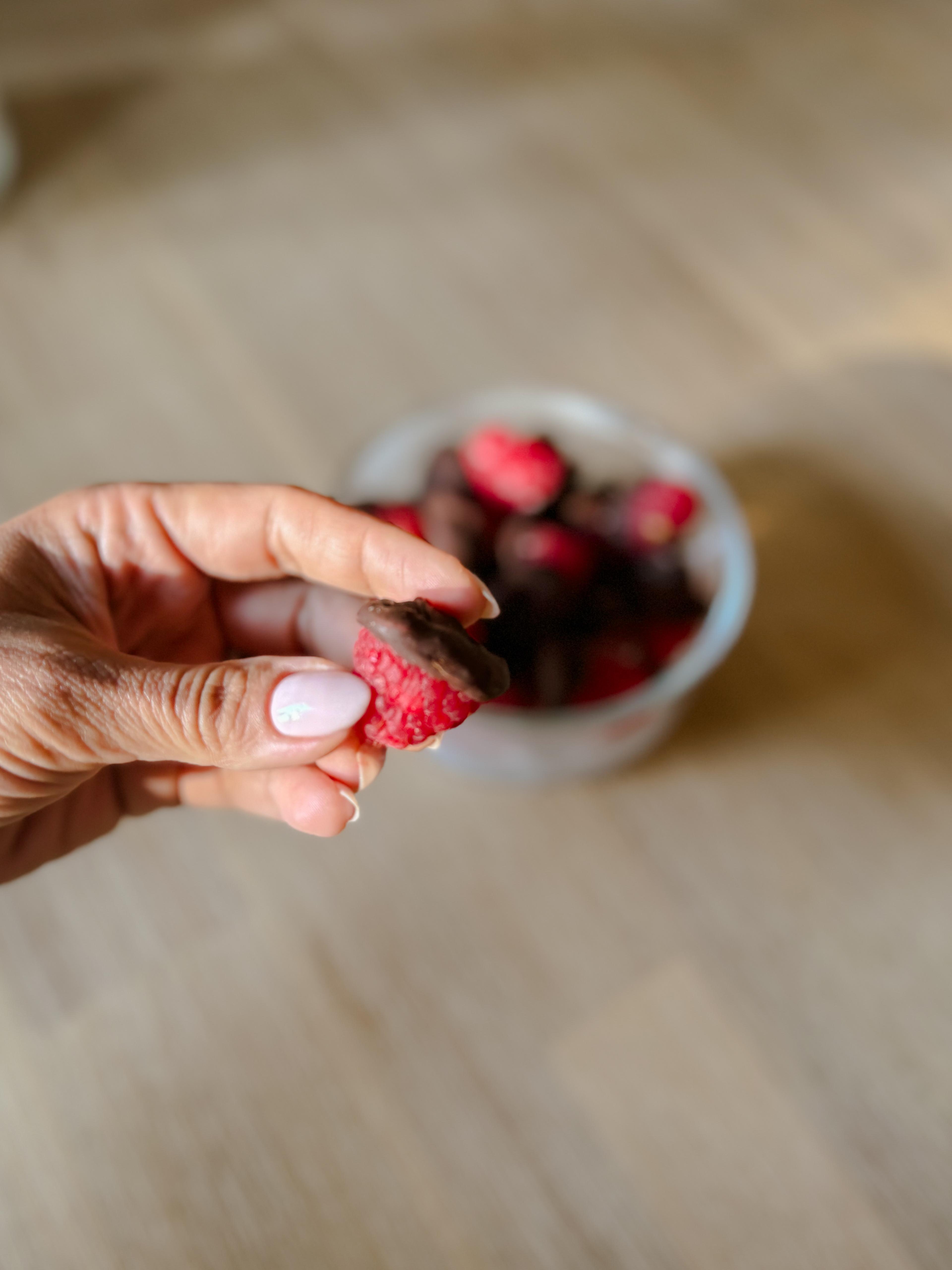 These little frozen bites are a perfect, moderately sweet treat to enjoy after a weeknight dinner. The 60% dark chocolate in this recipe allows the chocolate to melt while still offering the antioxidant and fiber benefits of dark chocolate.