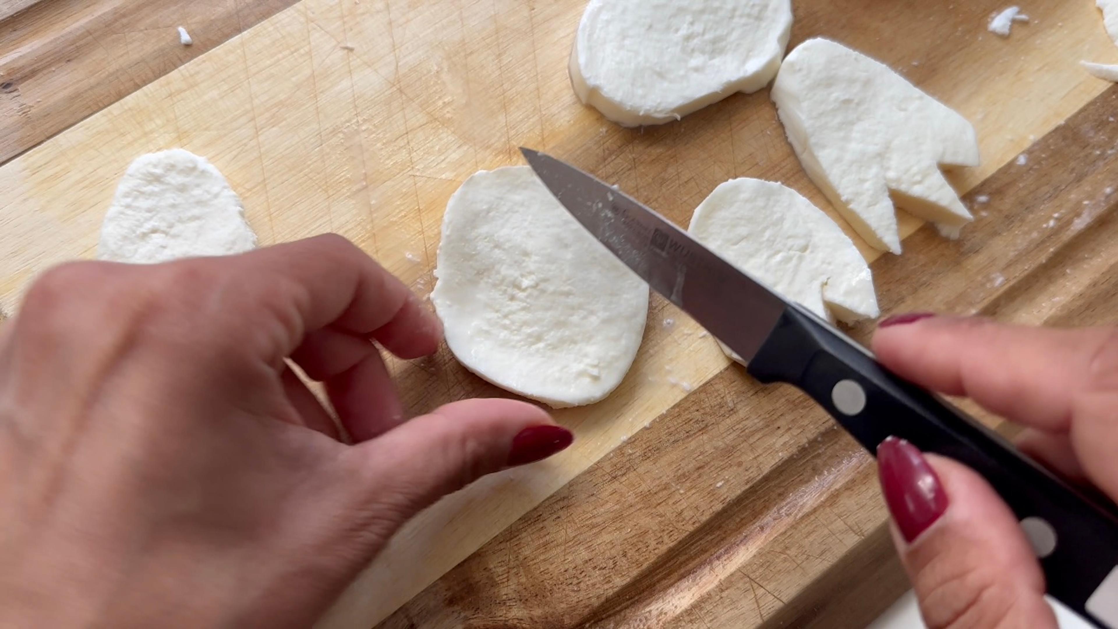 Cut mozzarella slices to look like ghosts.