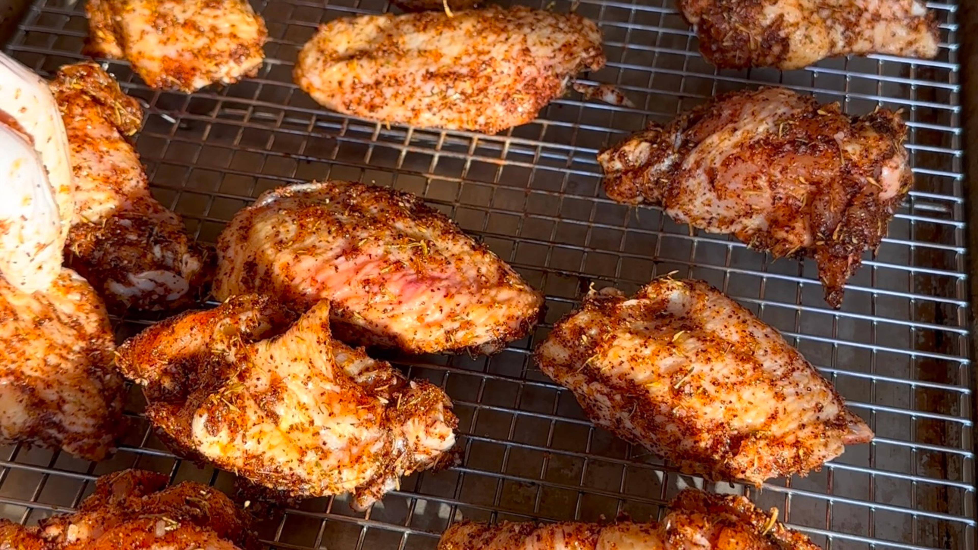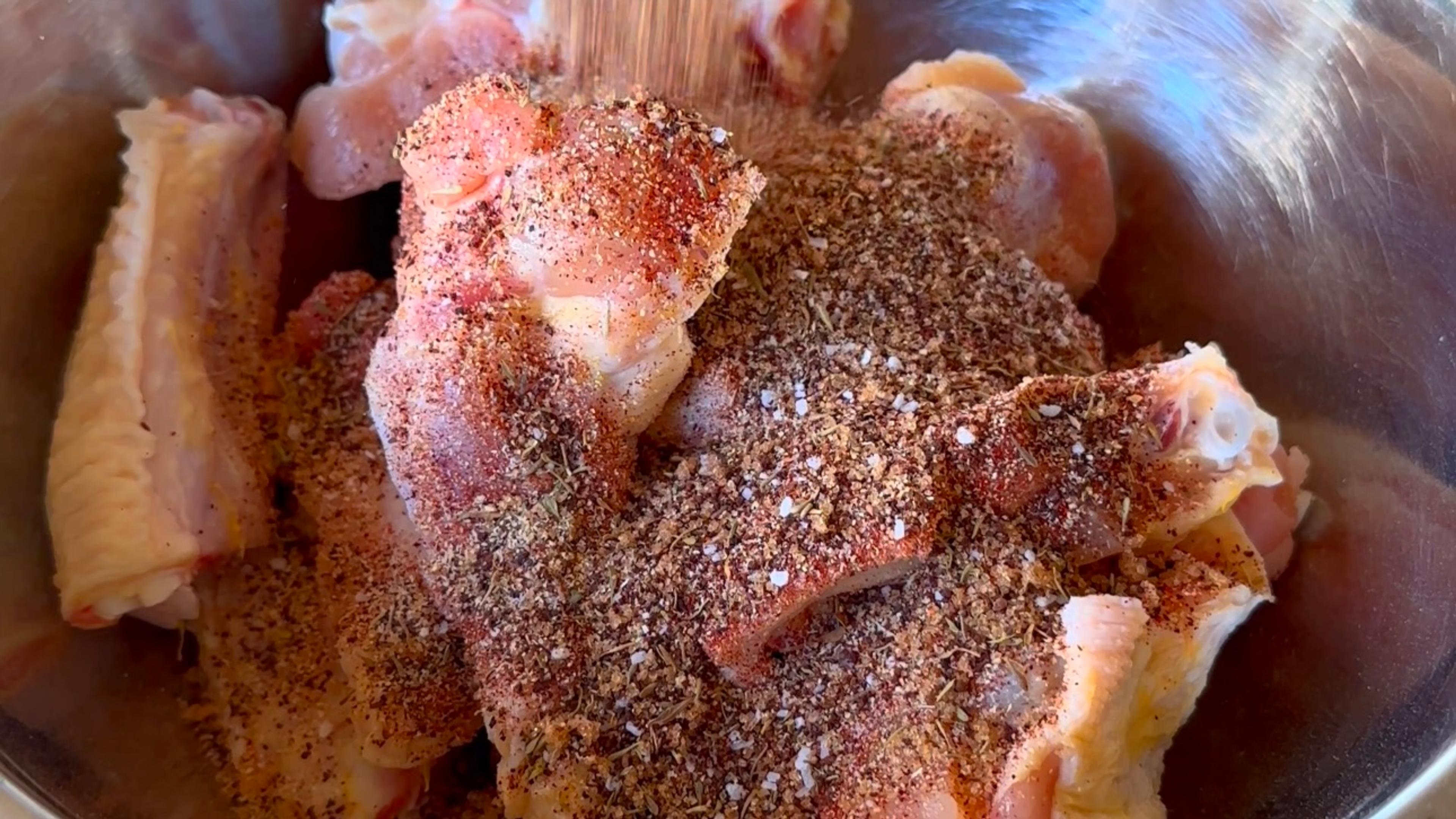 Toss the chicken wings with the oil and seasonings until well-coated.