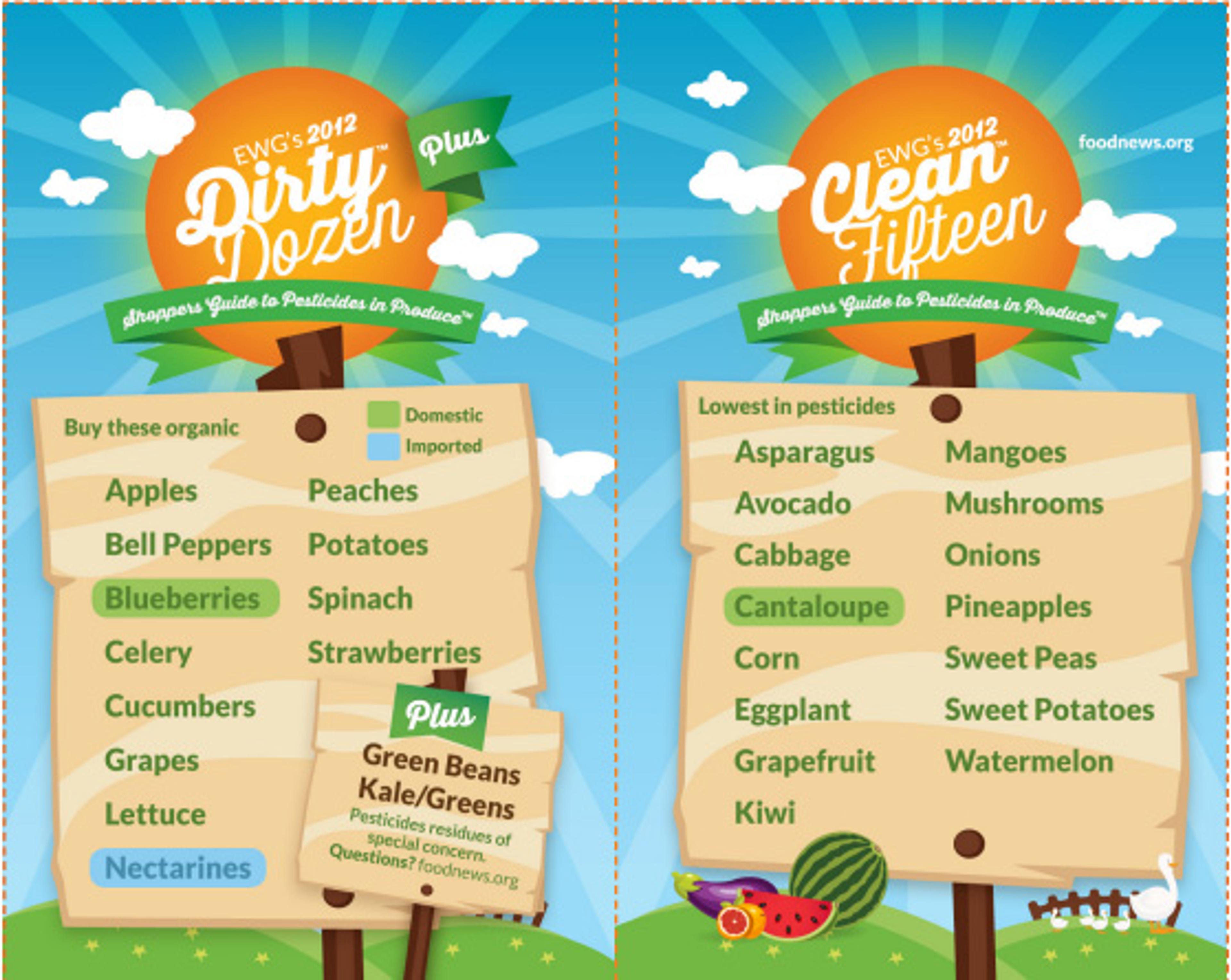 The Environmental Working Group has released its 2012 Shoppers Guide to Pesticides in Produce, more commonly known as the Dirty Dozen list. It also lists its Clean Fifteen, the conventionally grown fruit and vegetables least likely to test positive for pesticide residue.