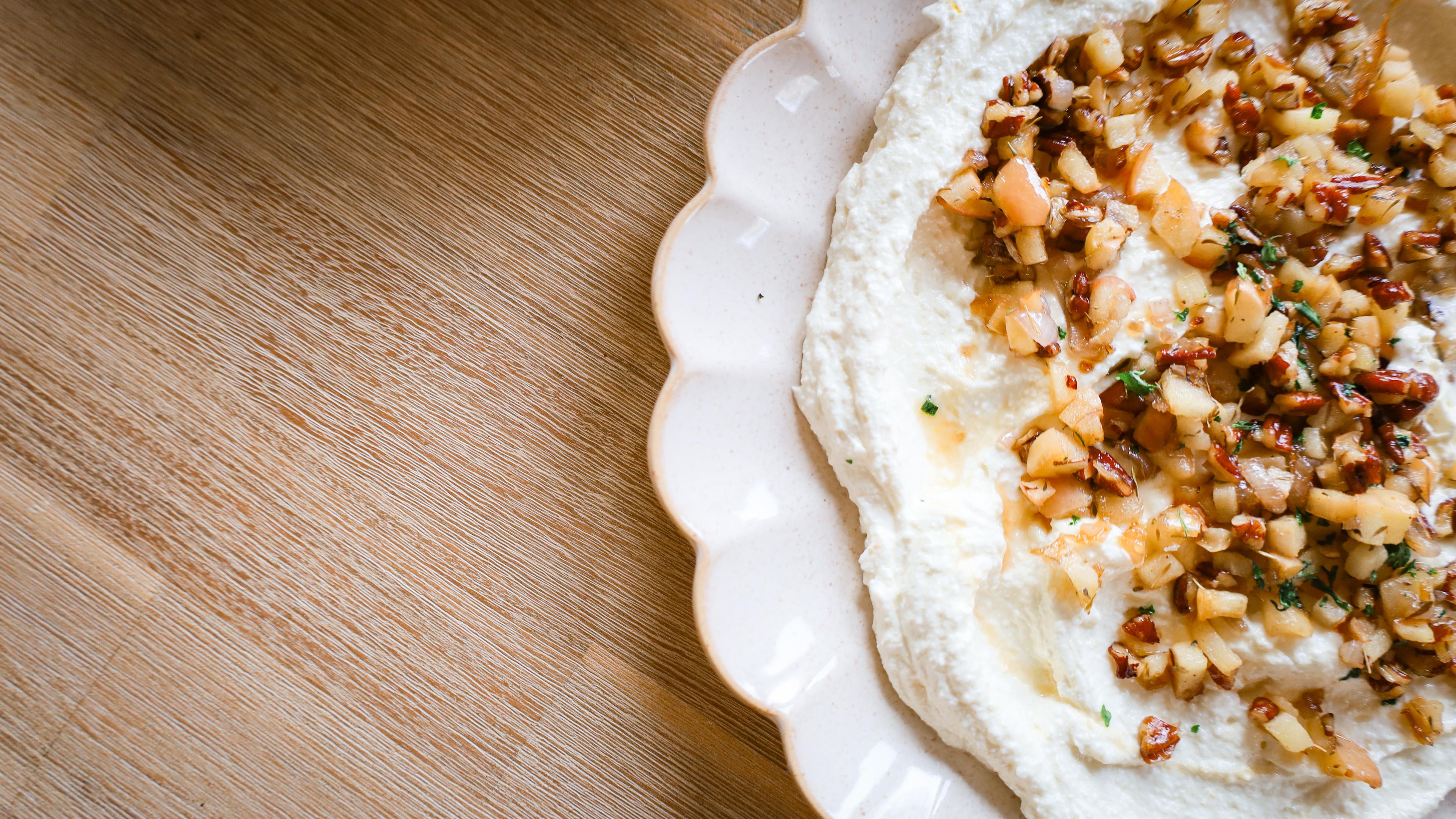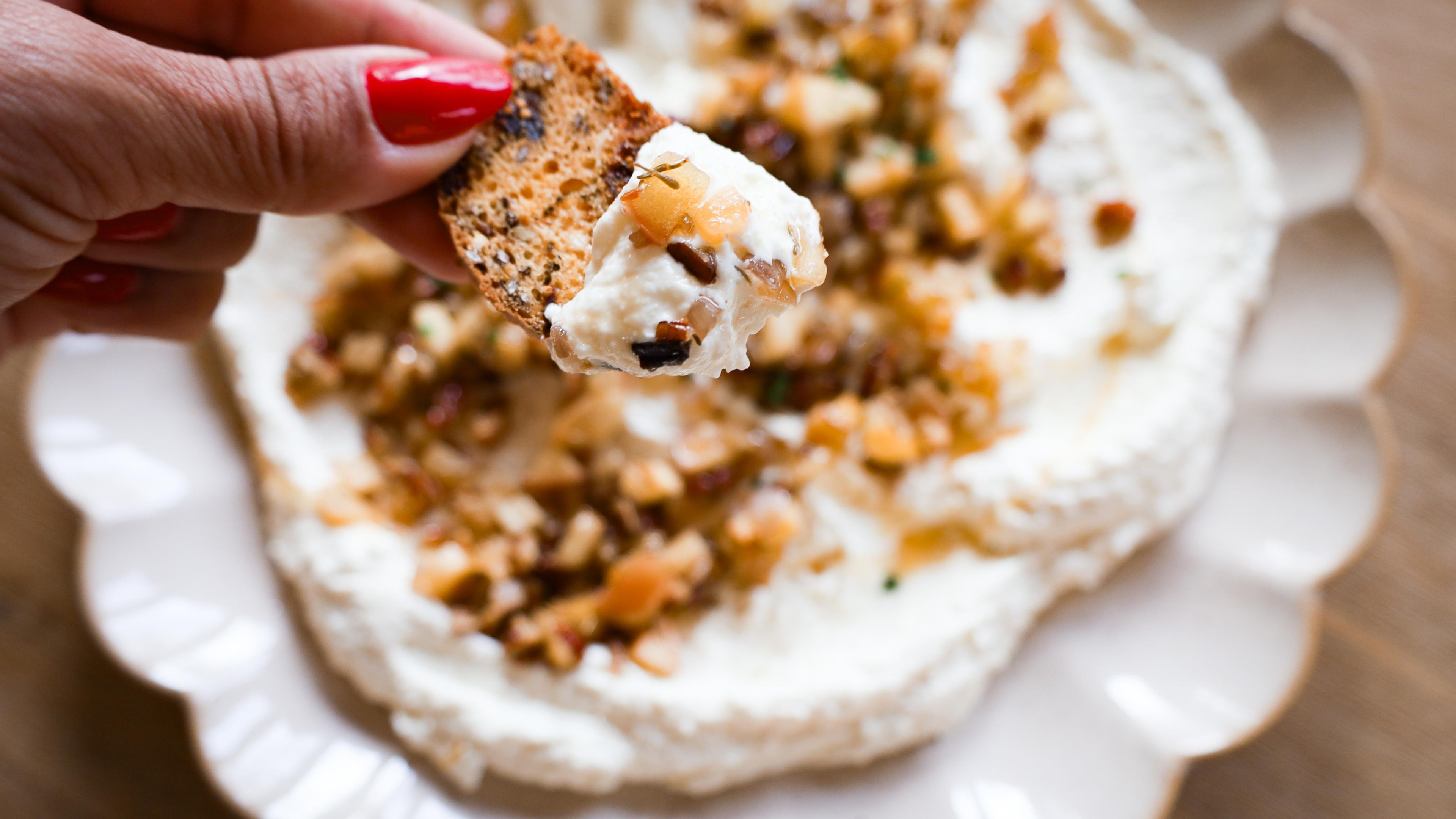 Greek Yogurt Whipped Feta Dip with Apple and Pecan Topping