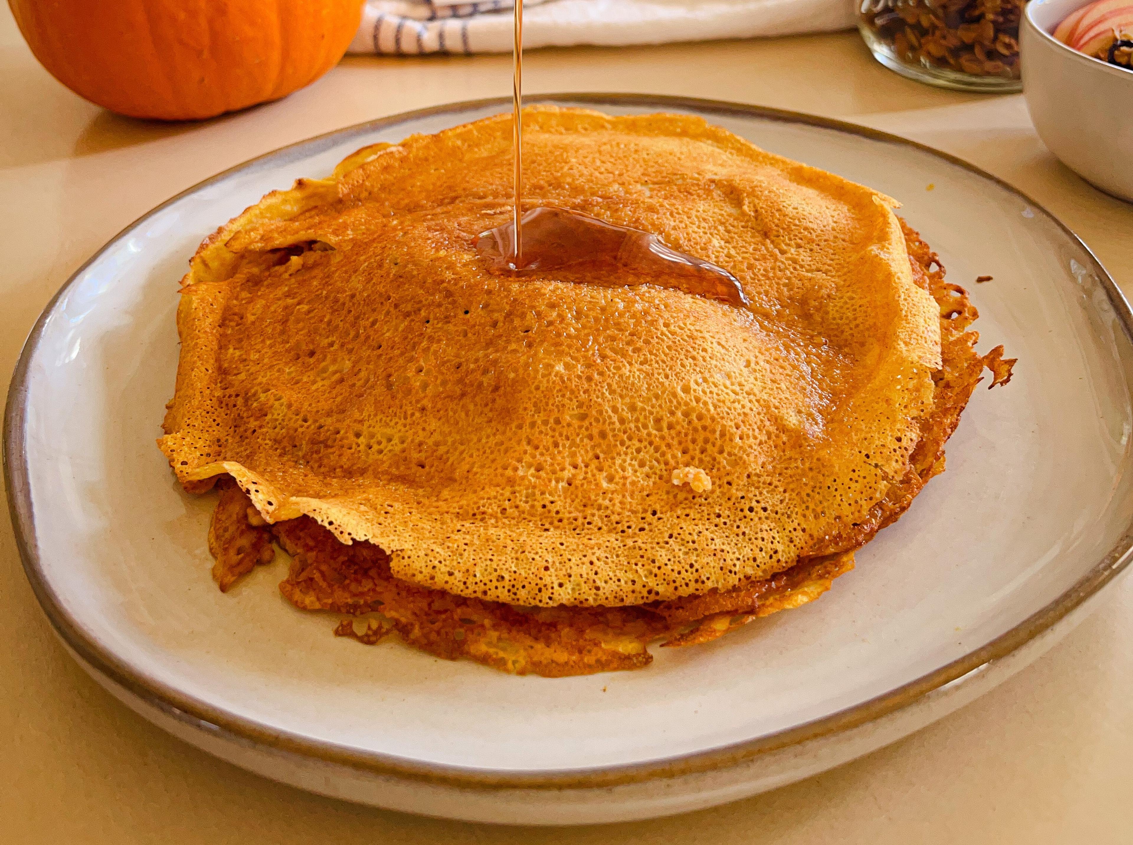 Try these healthy and easy pumpkin pancakes for your next breakfast or brunch to bring the warmth of pumpkin spice flavors to your table. This recipe features canned pumpkin whisked into a homemade pancake batter full of ginger, nutmeg, and cinnamon.