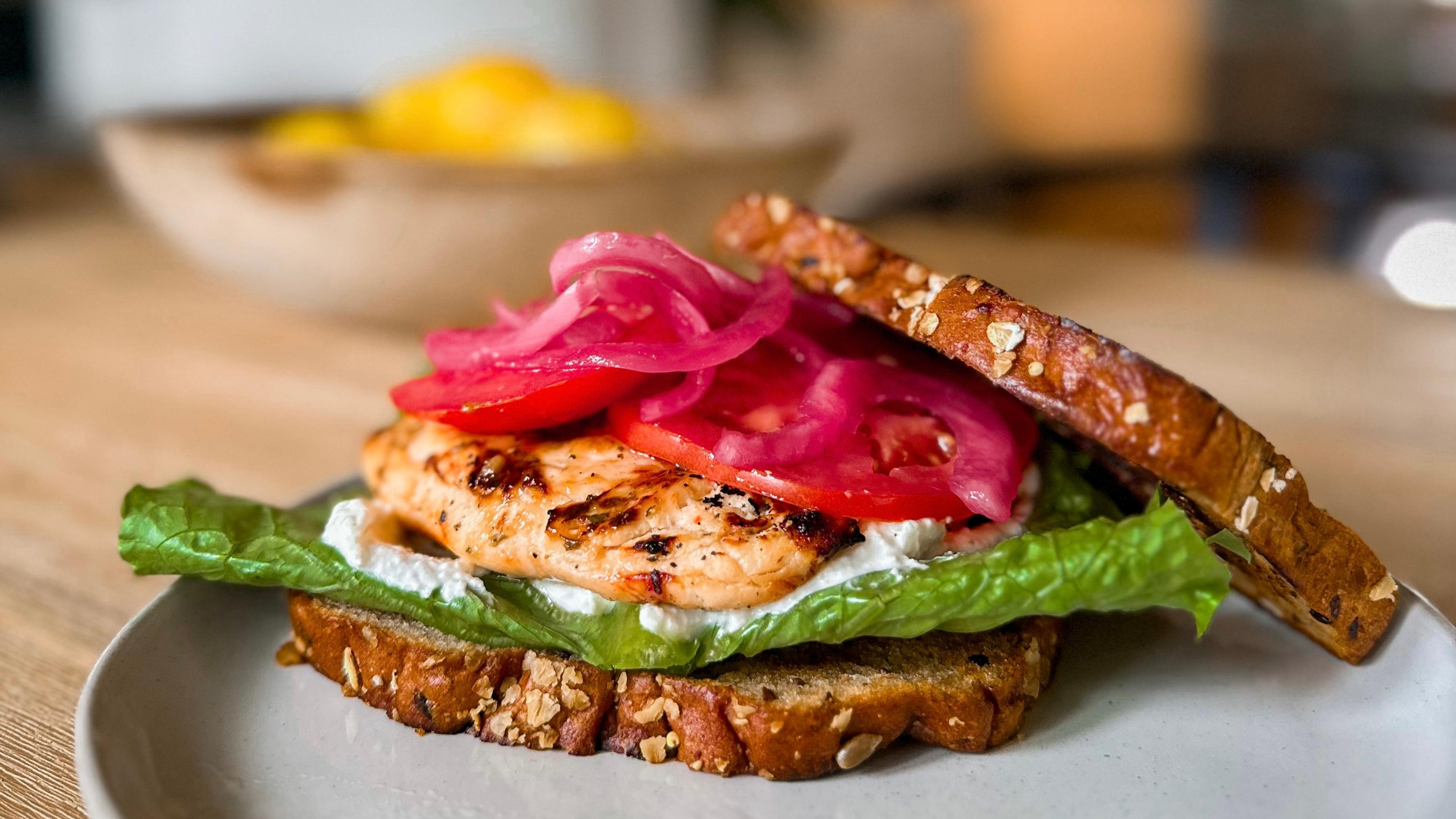 - Step 2- Grill peach slices on each side until grill marks appear.