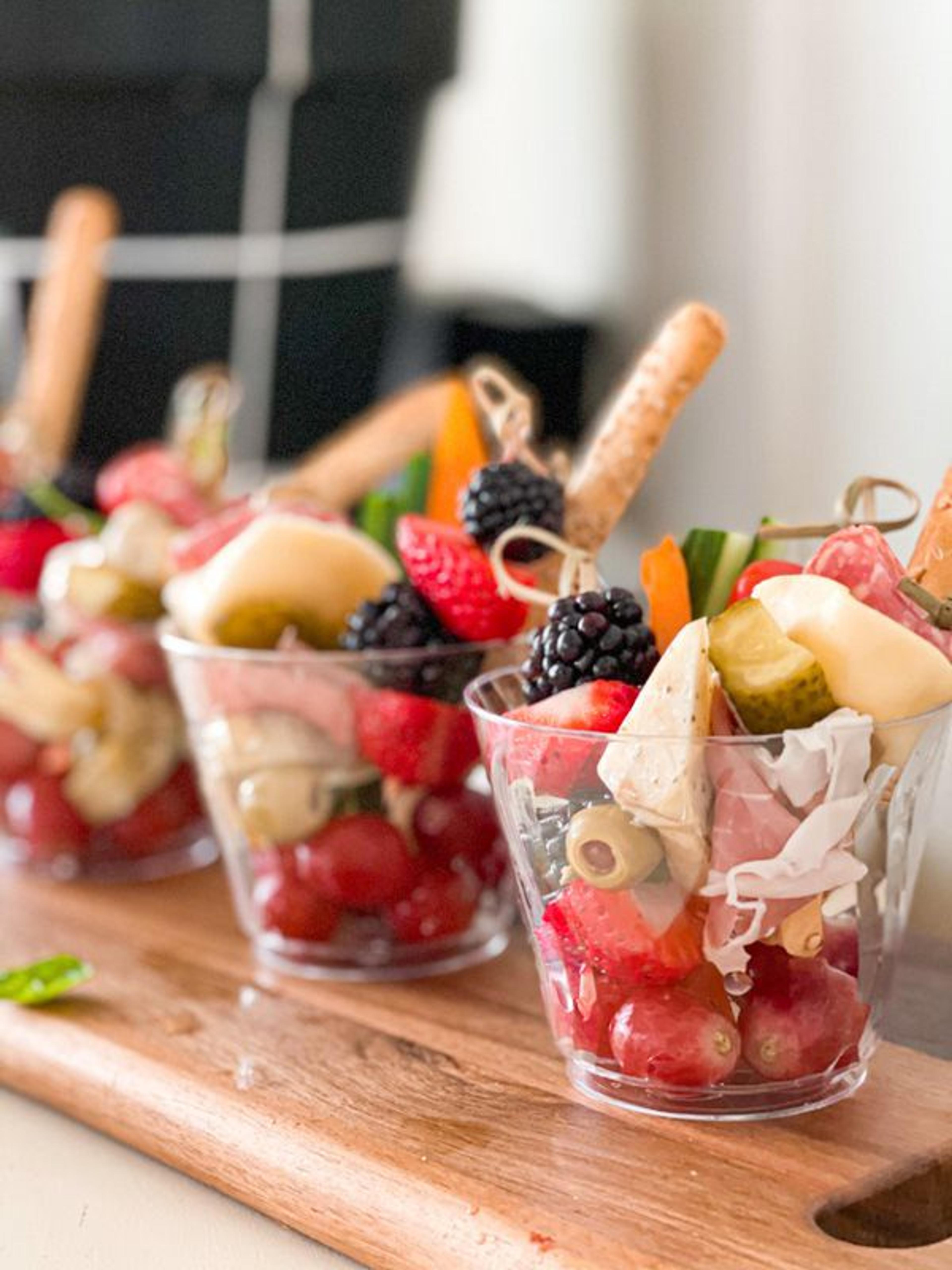 Whether a tailgate or any other get-together, individual servings are a great way to handle food safely. Choosing between the jarcuterie or crudité cups is a tough choice, though. We’ll take one of each!