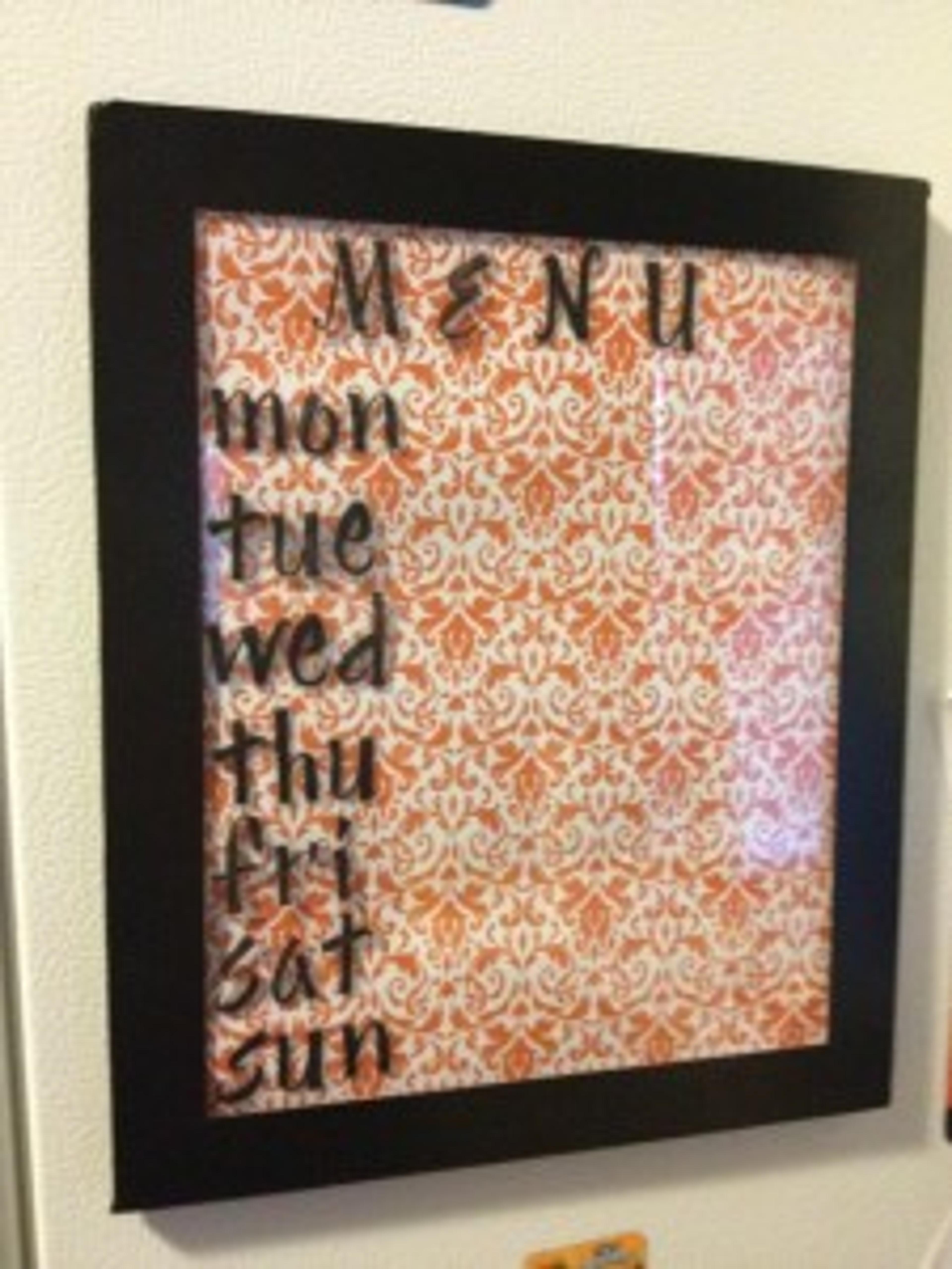 Then I sit down and make my menu for the week. I use the menu board pictured above to keep me on track through the week, but just writing it down on a piece of paper and sticking it on the fridge works too.
