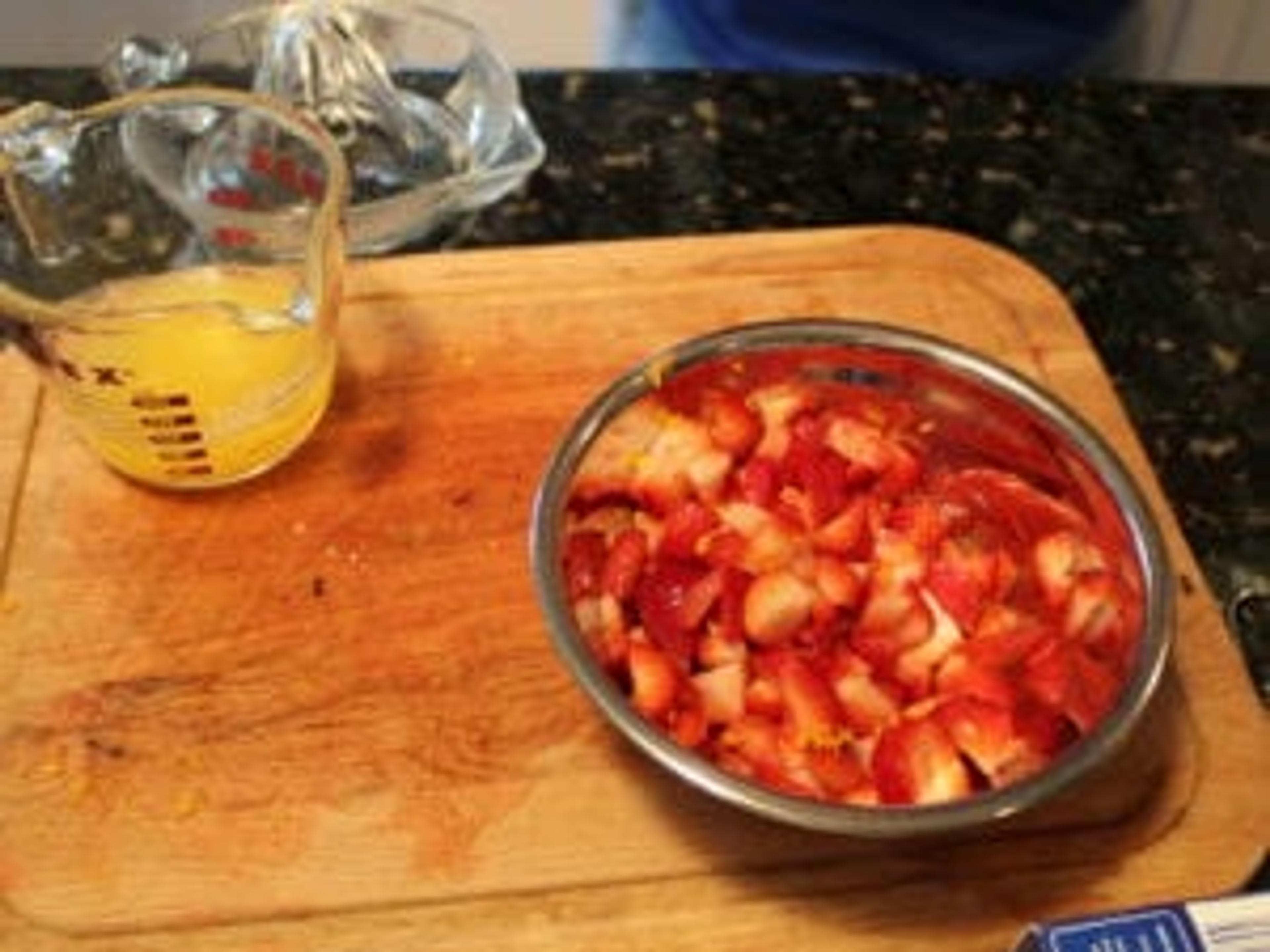 For the filling you’ll mix orange juice, Michigan strawberries, a bit of sugar and orange zest.