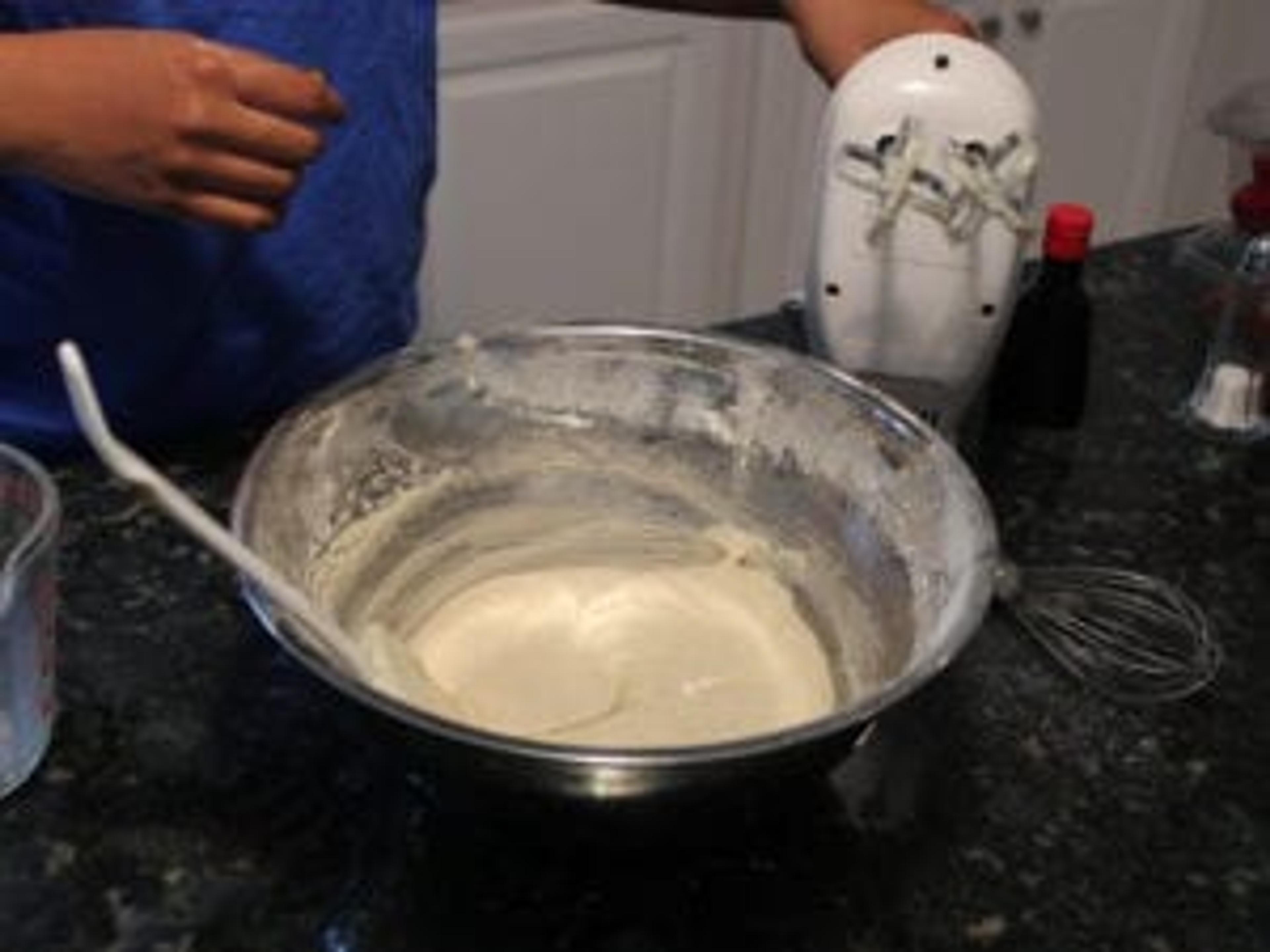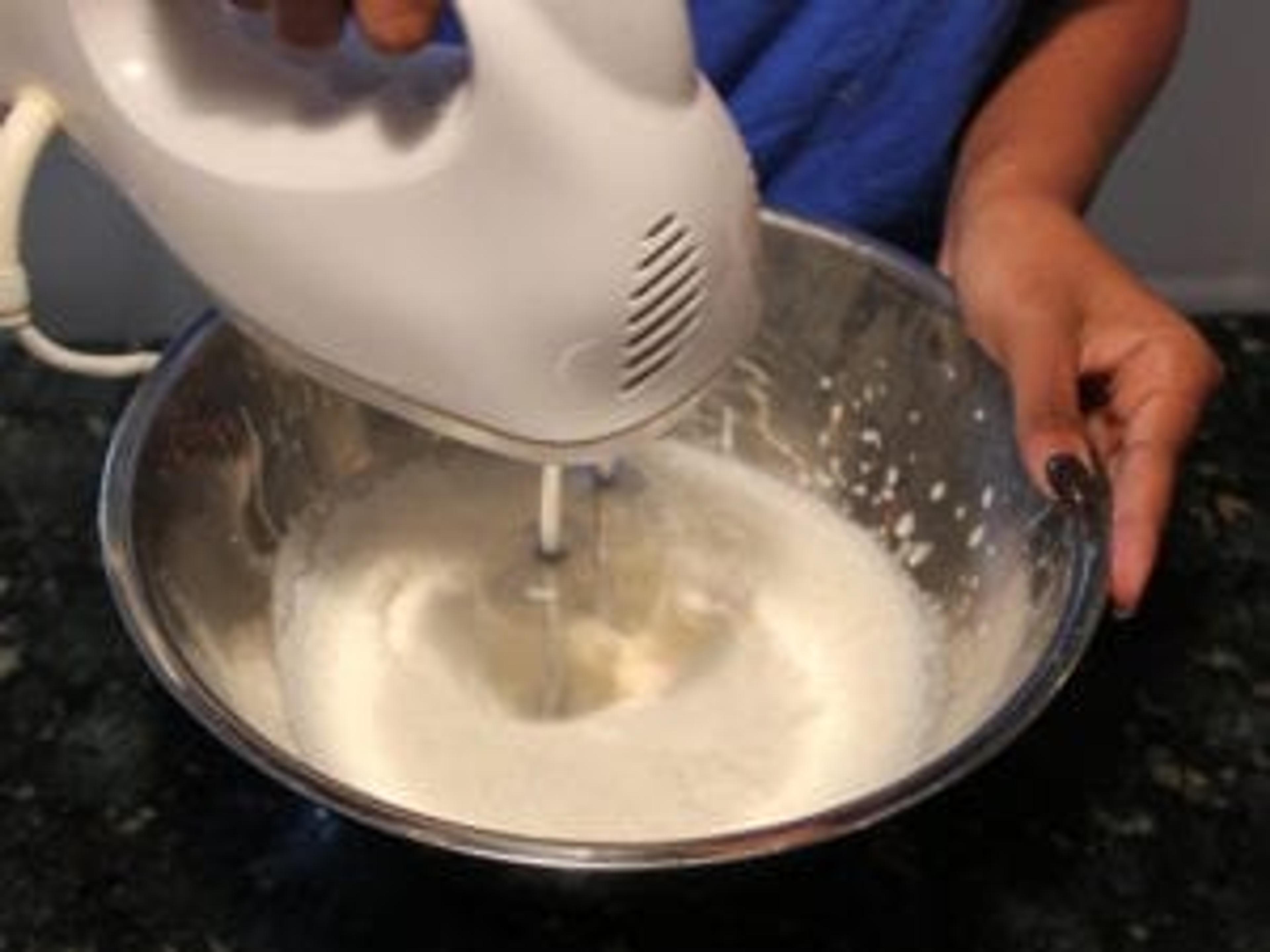In a large bowl, mix cream, powdered sugar, and vanilla.