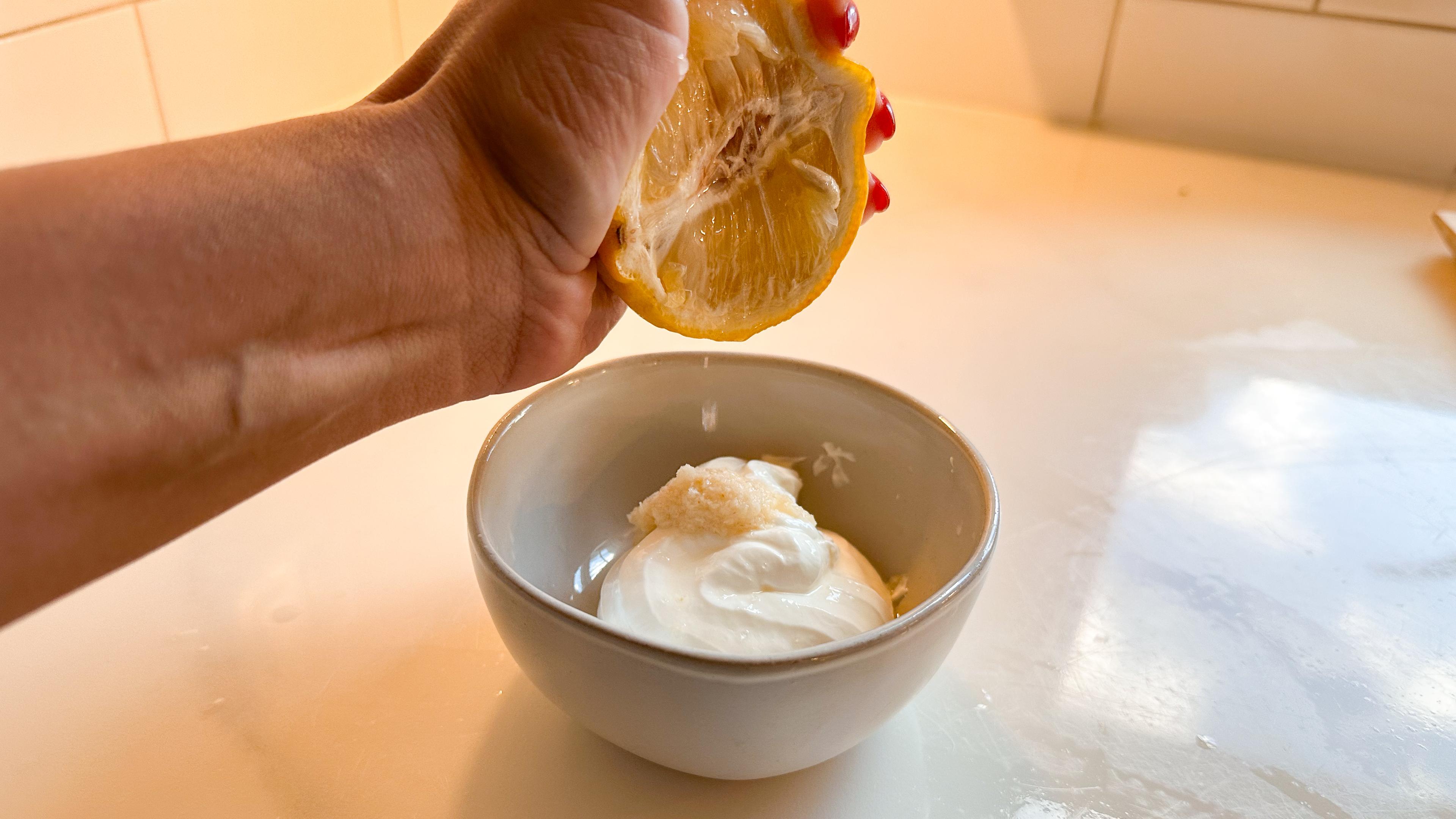 In a bowl, add light sour cream, horseradish, lemon juice and milk. Mix until well-combined, adding more milk if needed to thin.