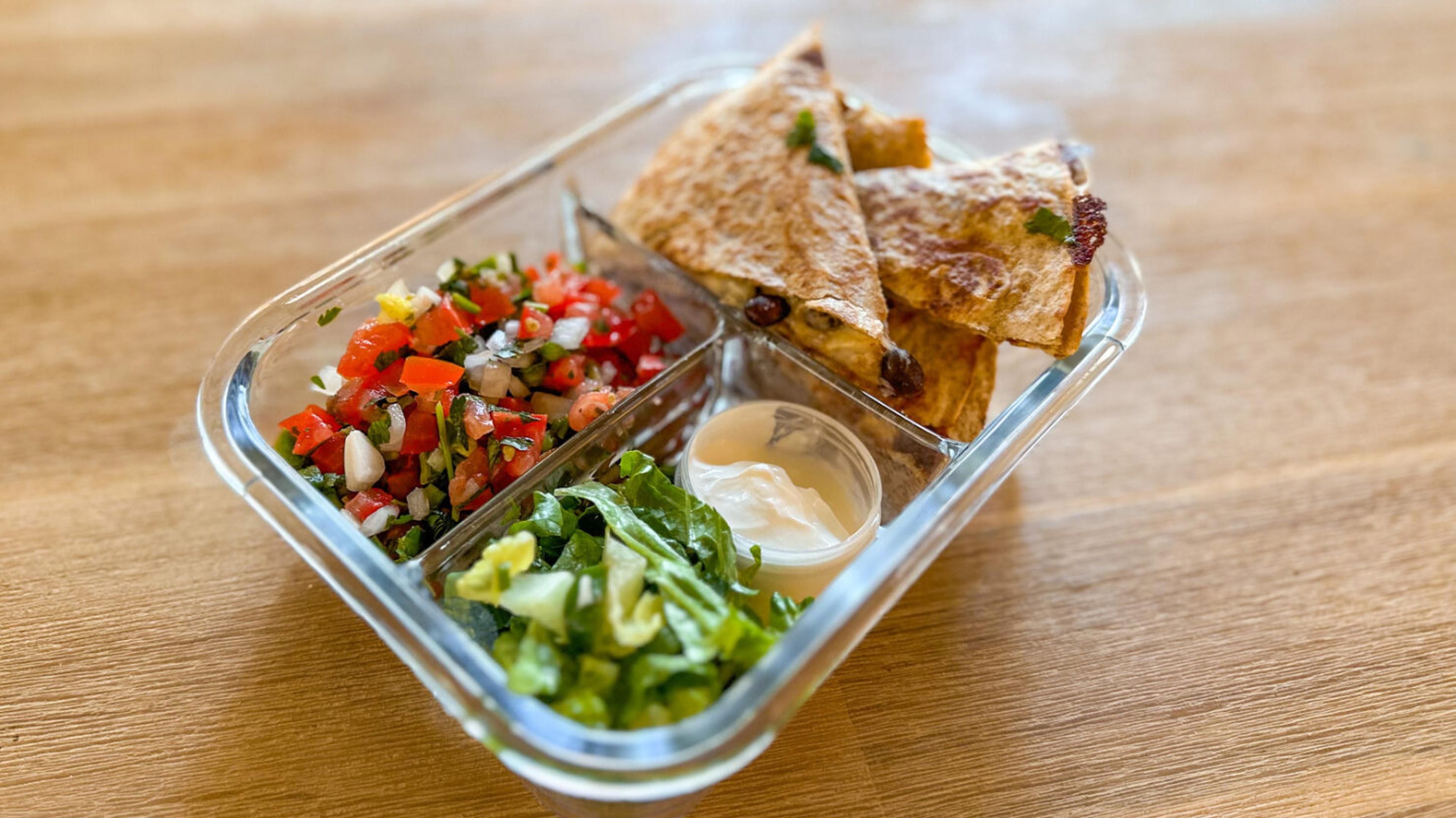 This Tex-Mex dish is packed with plant-based protein from black beans. The whole wheat tortillas add fiber, which is great for digestion and helps you feel full. You can take it up a notch by serving it with pico de gallo, shredded lettuce and a dollop of Greek yogurt. It's a delicious and nutritious option for a tailgating spread.