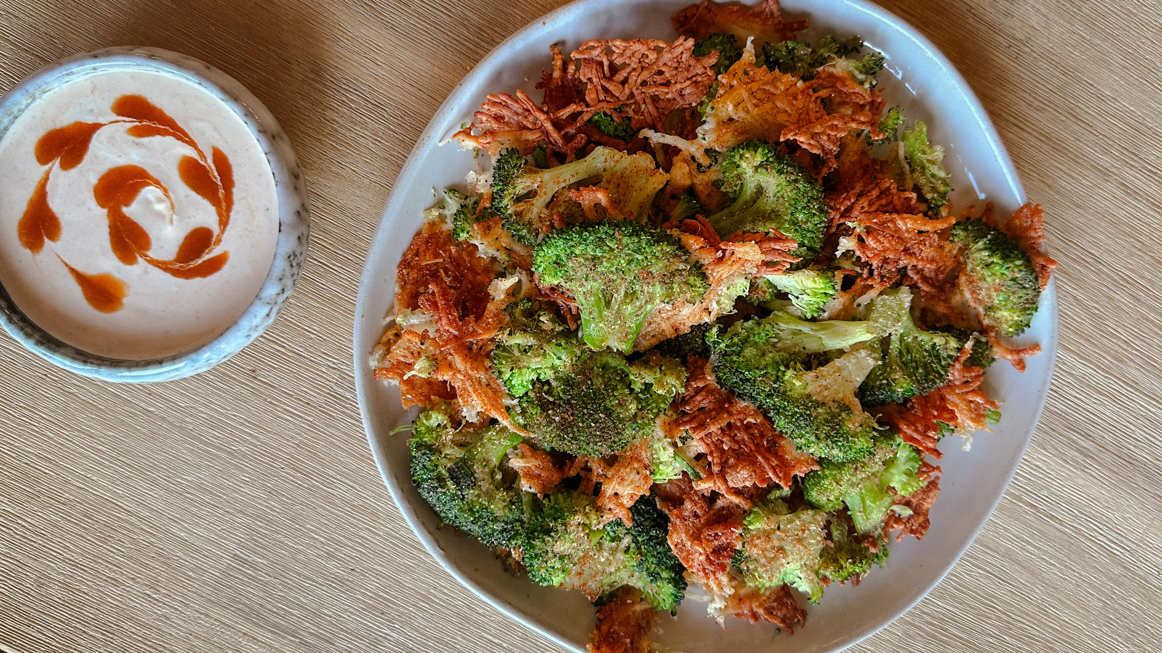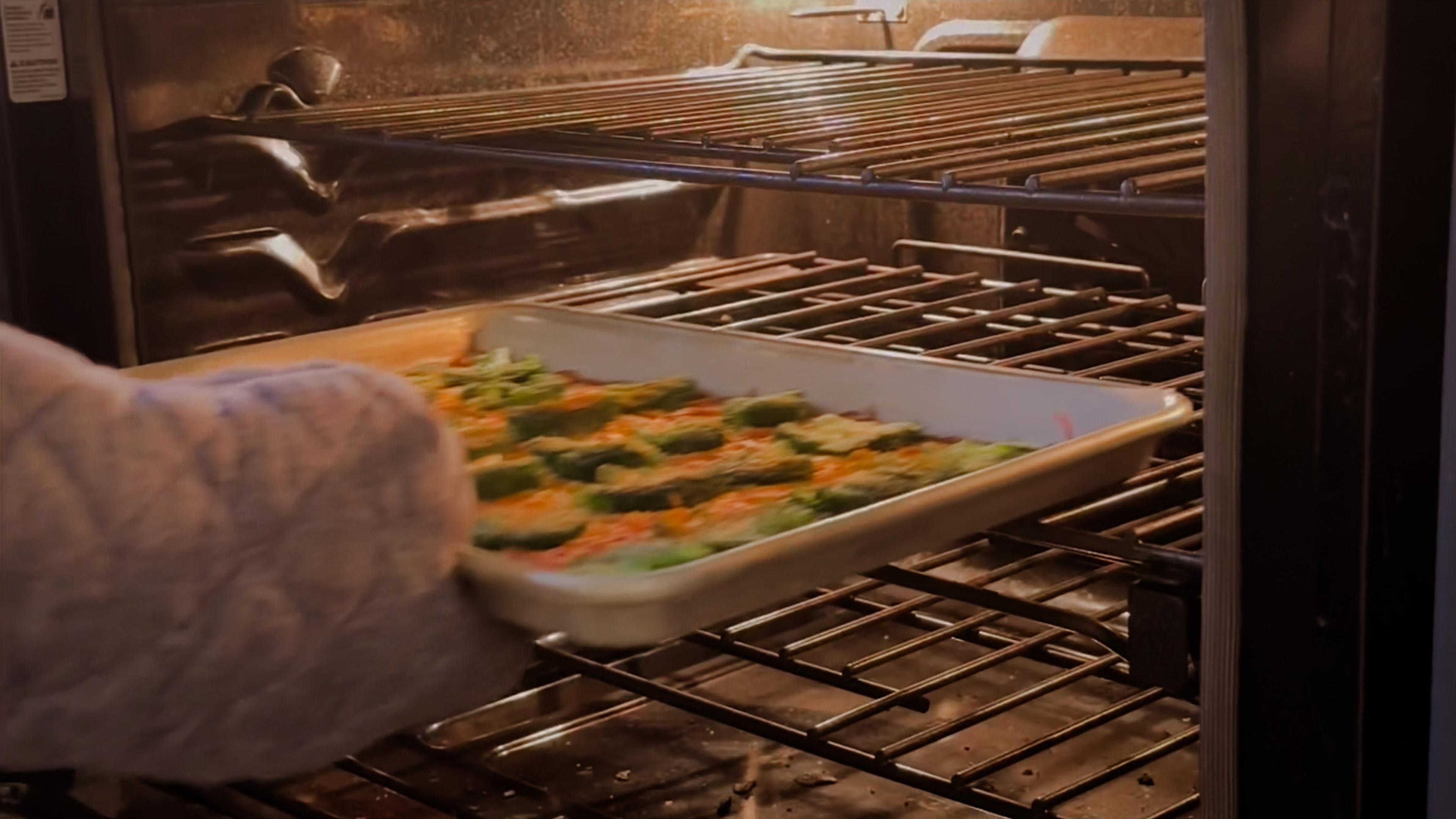 Bake for 20-25 minutes or until the cheese has turned golden brown and the broccoli is turning crispy.