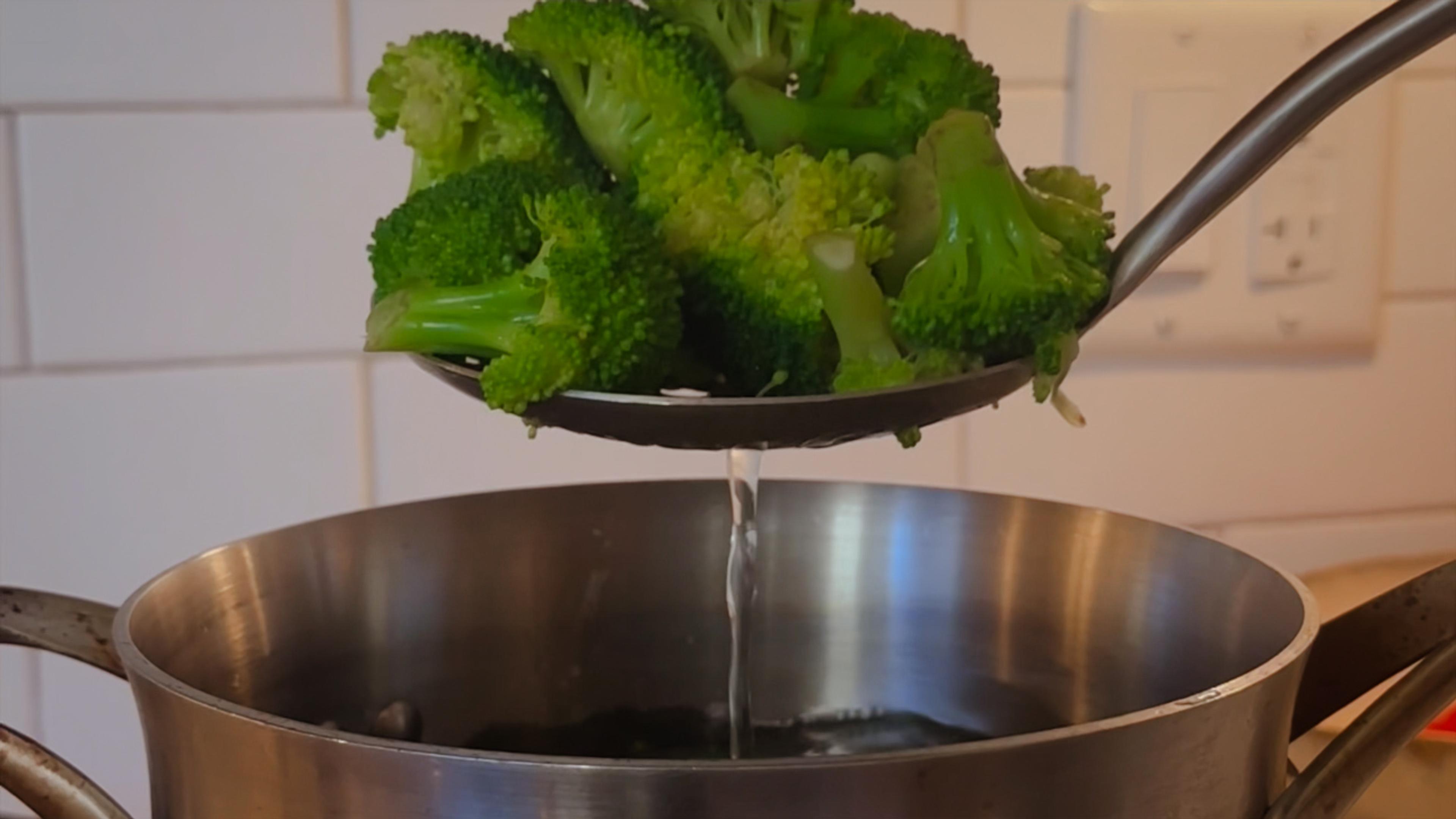 Bring a large pot of water with 1 tsp. salt to a boil. Add florets and cook for 2 minutes. Use a slotted spoon and transfer paper towel.