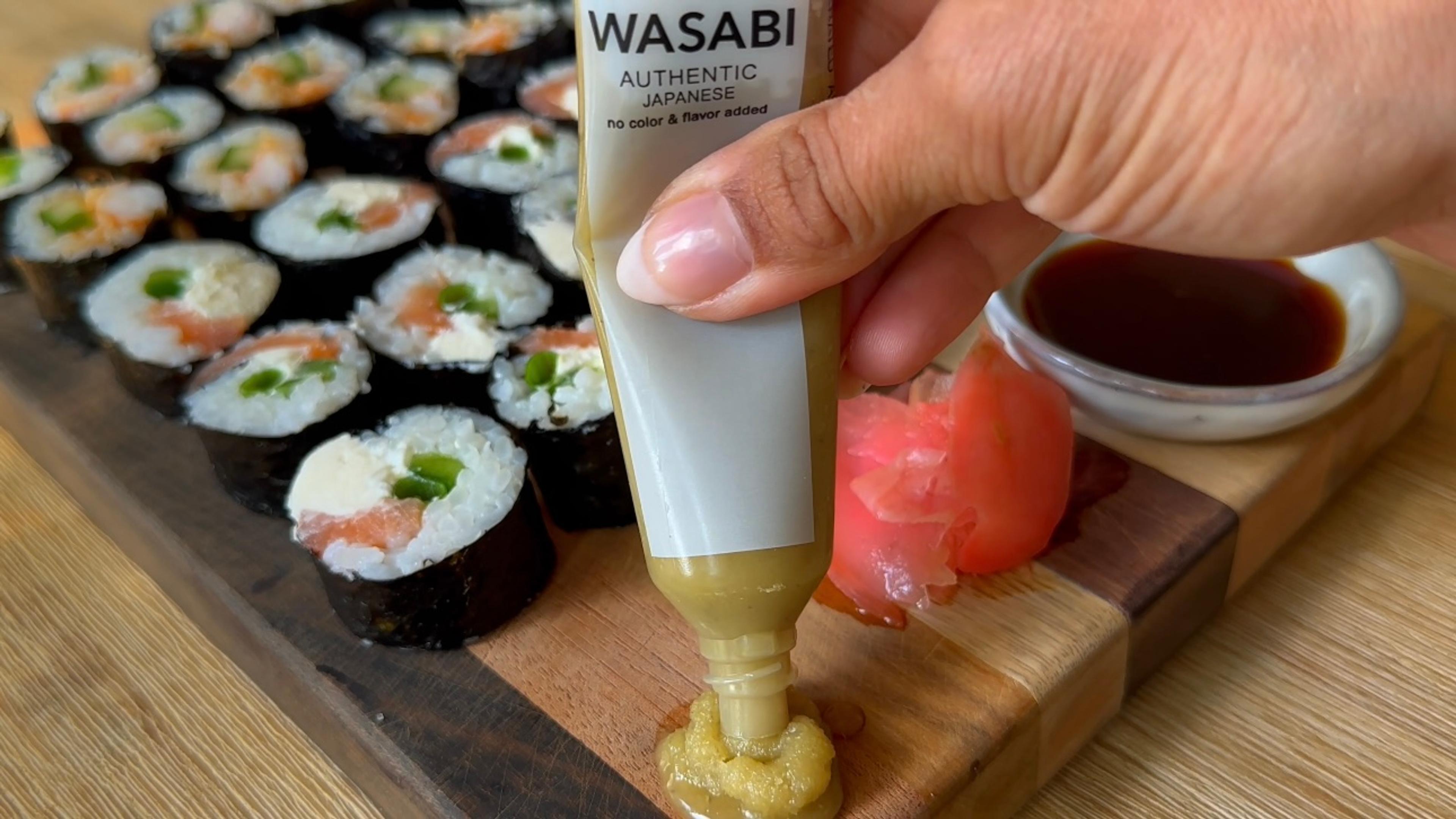 low-sodium soy sauce, wasabi and pickled ginger to taste