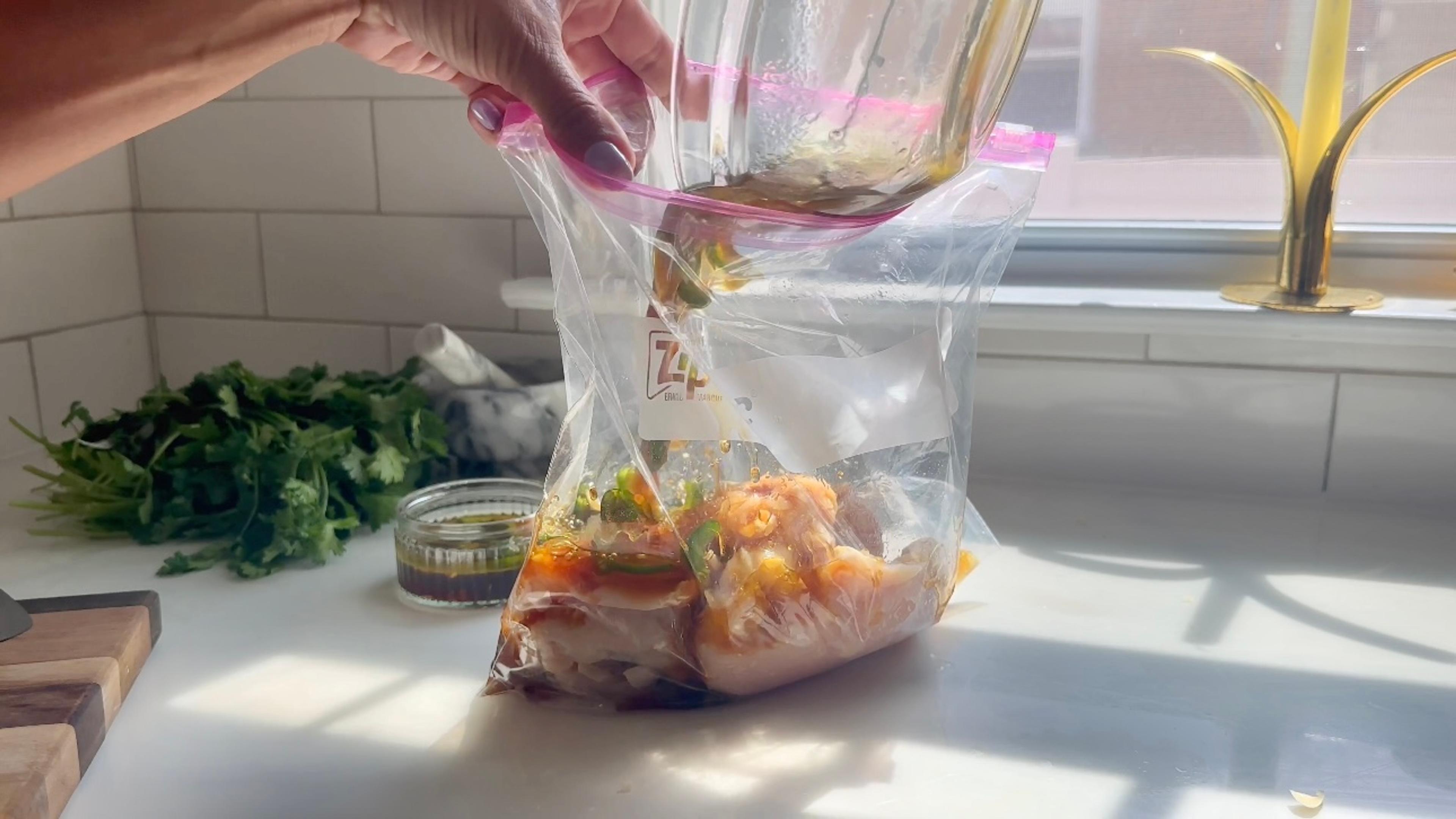 In a bowl, add 1/3 cup pineapple juice, jalapeños, garlic, soy sauce, honey and olive oil. Mix until well combined. Reserve ¼ cup of marinade. Marinade chicken for at least 2 hours