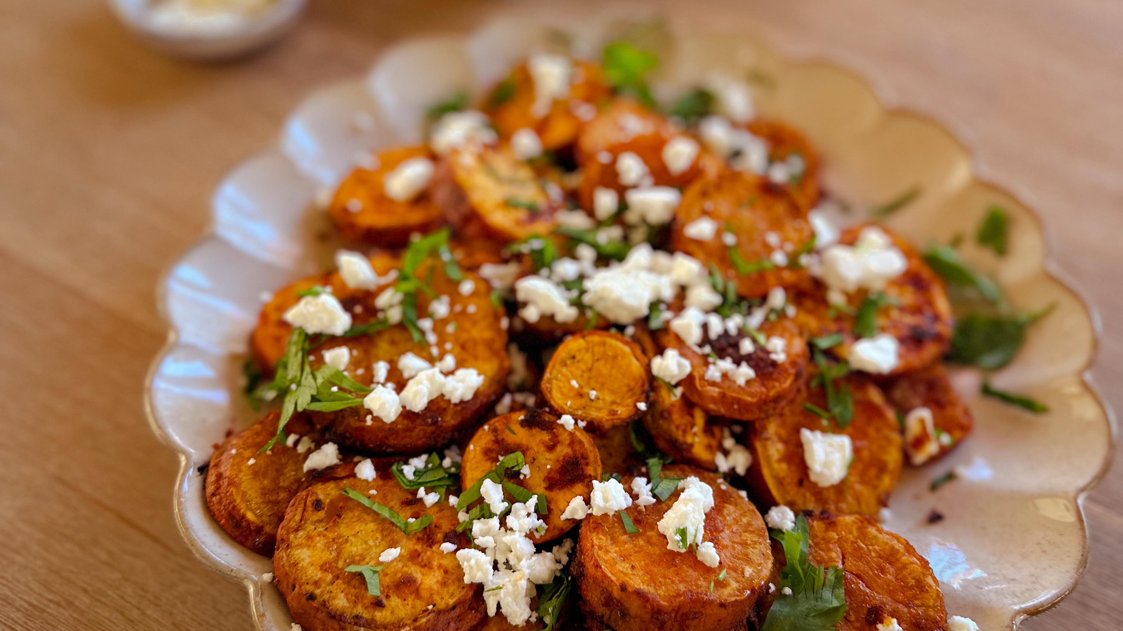Serve on a platter and top with parsley, crumbled feta. Finish with a squeeze of lemon juice.