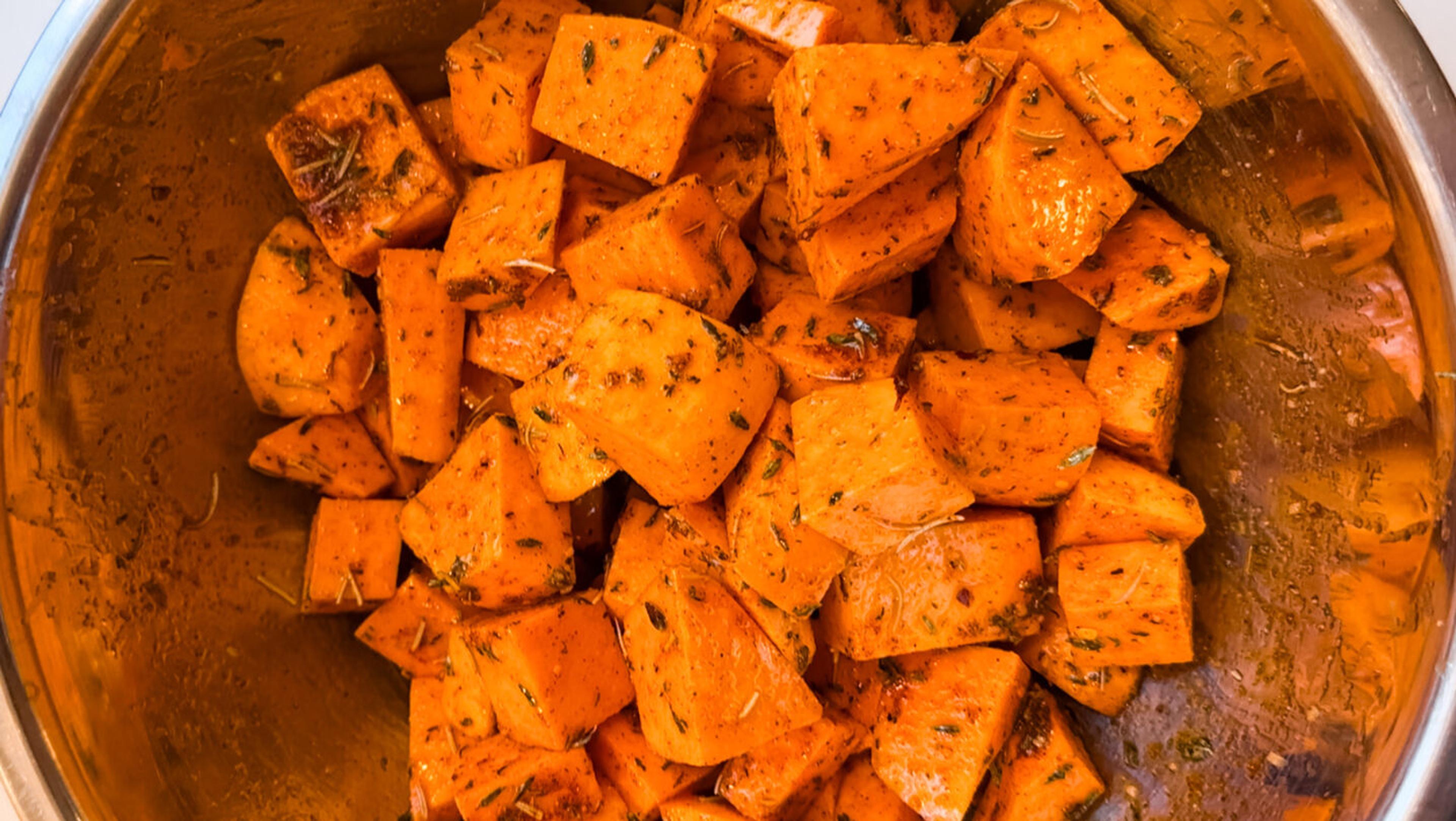 4 medium sweet potatoes, peeled and cubed to ¾ inch
