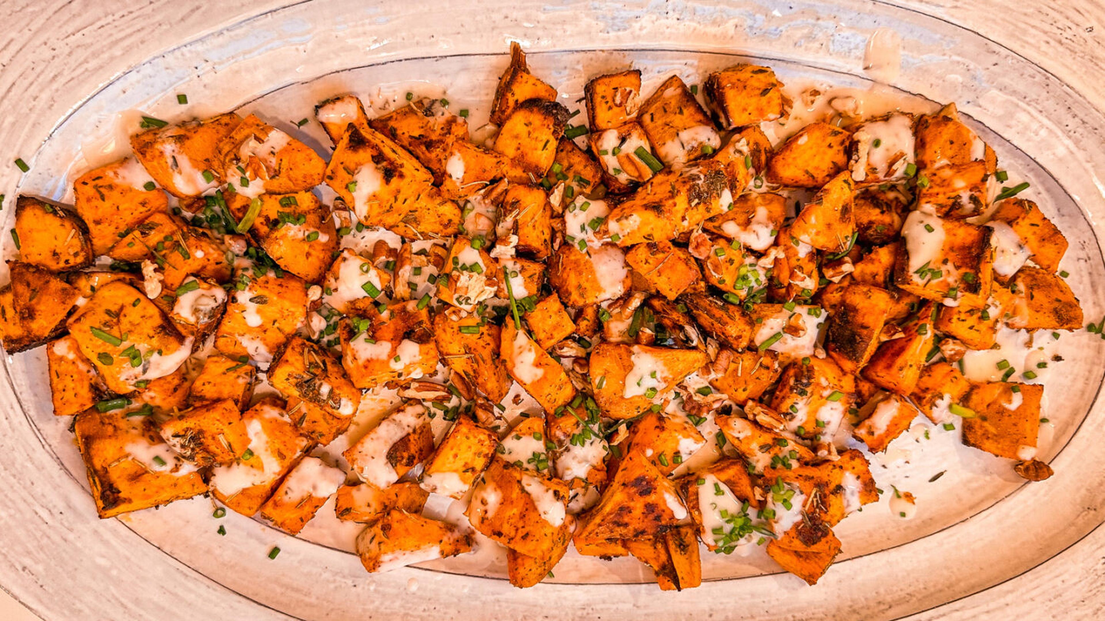 Roasted Sweet Potatoes with Lemon Herb Ranch Drizzle