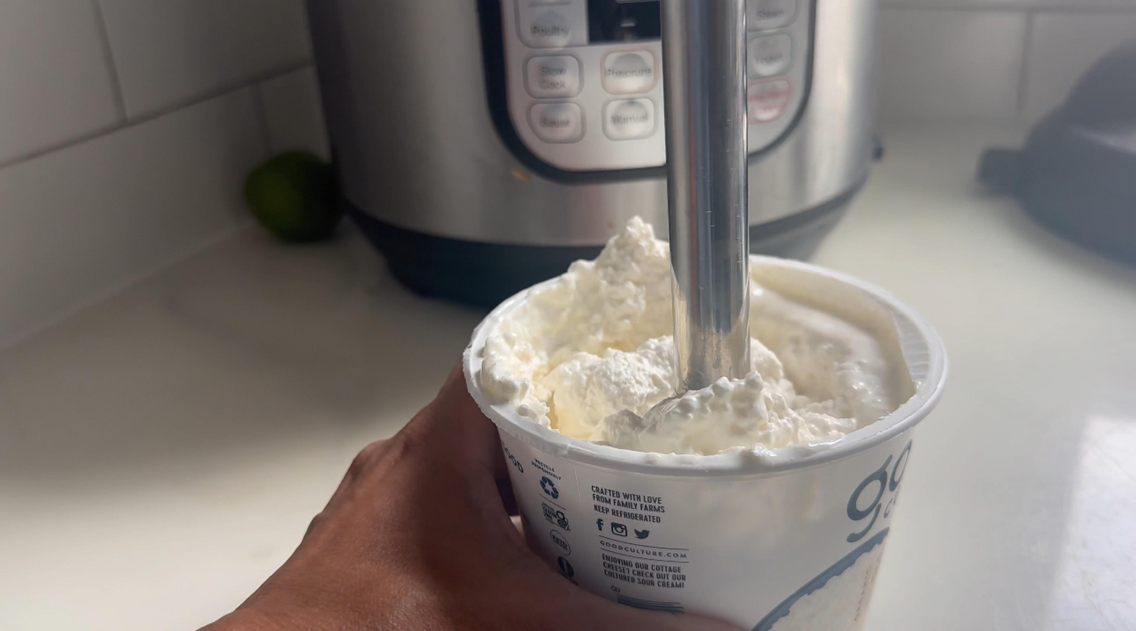 In a blender or using an immersion blender, blend the cottage cheese to make it smooth.