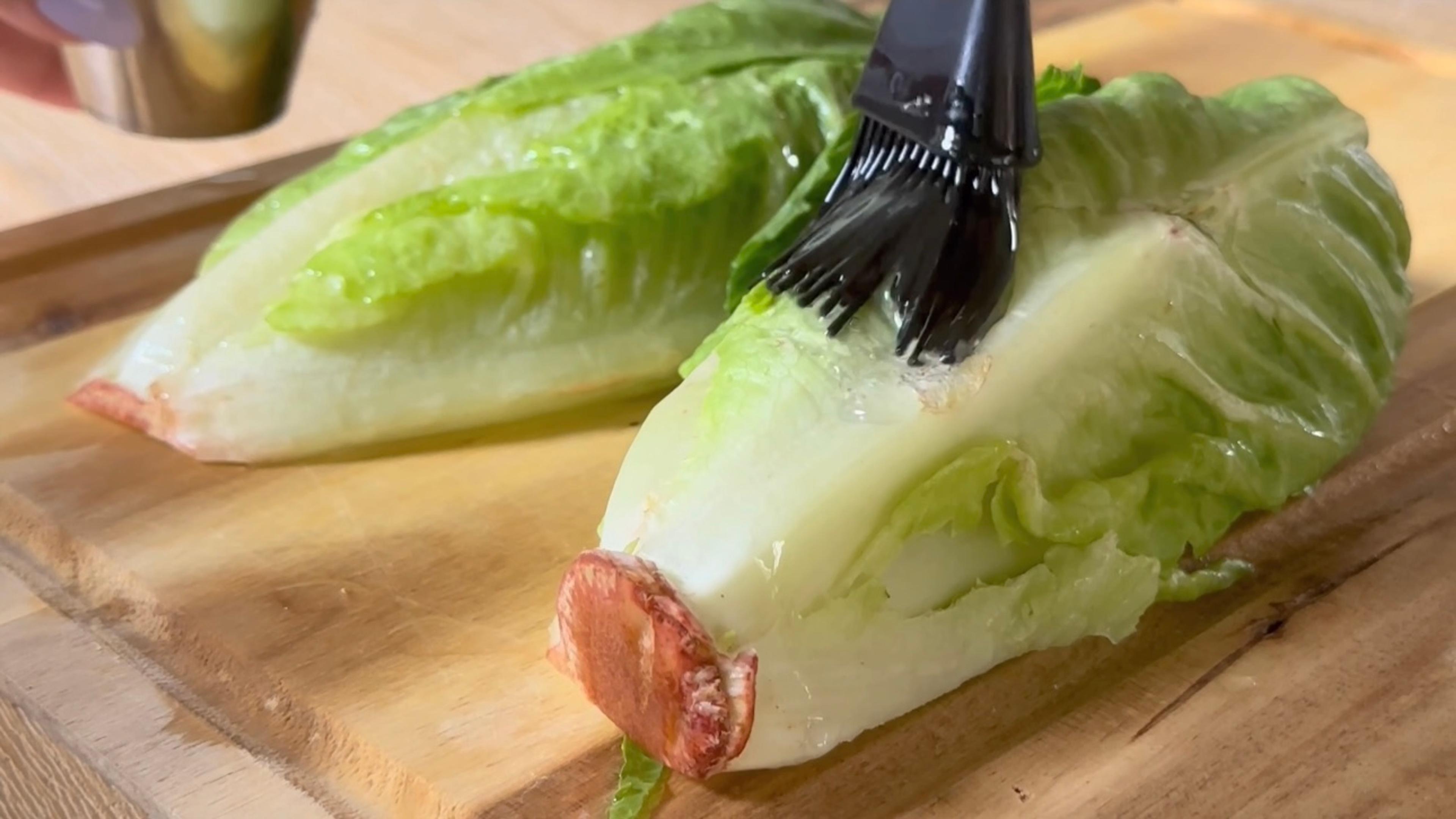 Use a food brush to brush oil all over the halved romaine and ear of corn.