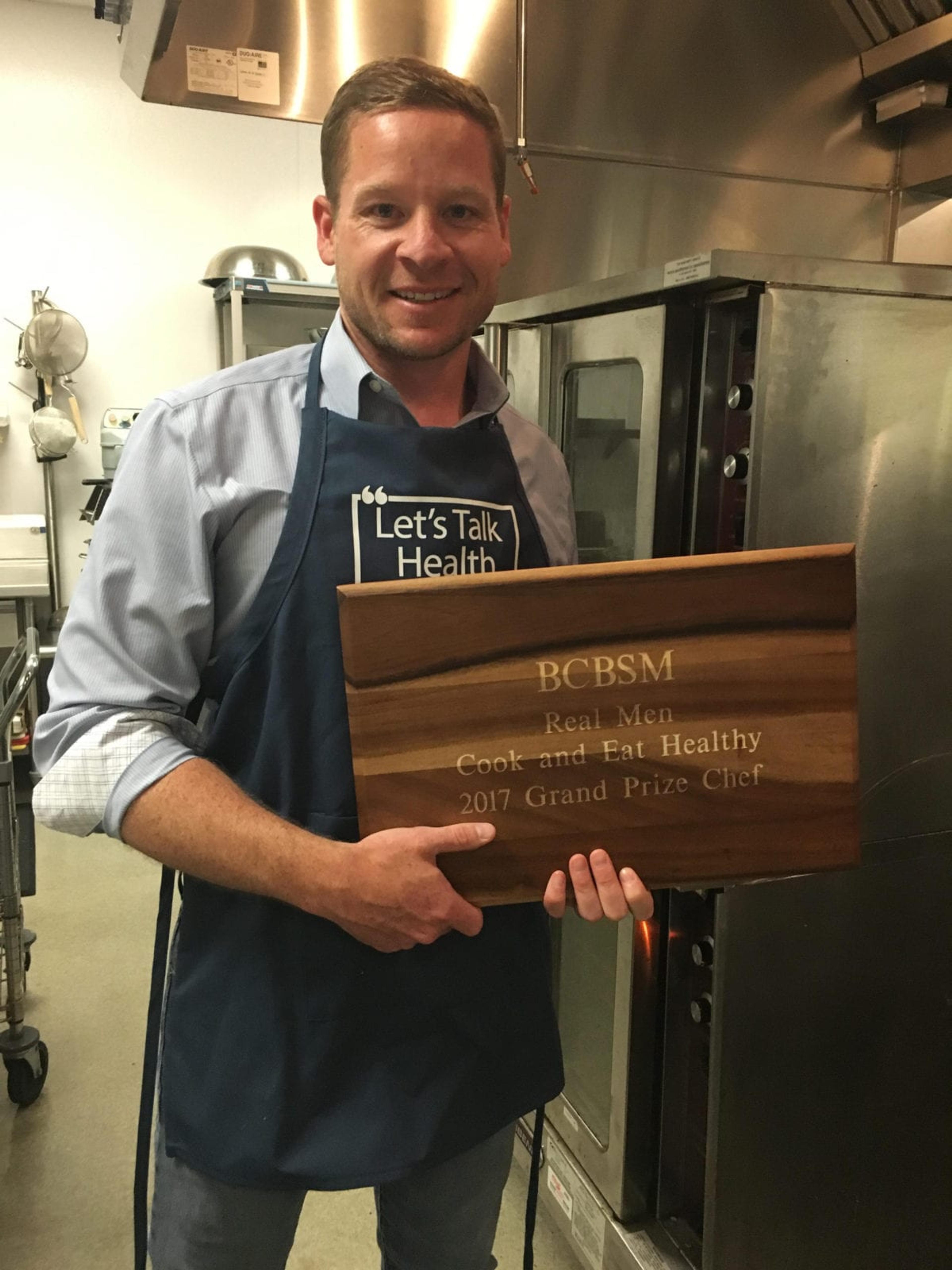 “I spent most of my high school and college years working in kitchens and restaurants, so the experience tonight was a bit like going ‘home’ again in some ways,” he said after being named the Grand Prize winner in a recent Real Men Cook and Eat Healthy Contest sponsored by Blue Cross Blue Shield of Michigan in Grand Rapids.
