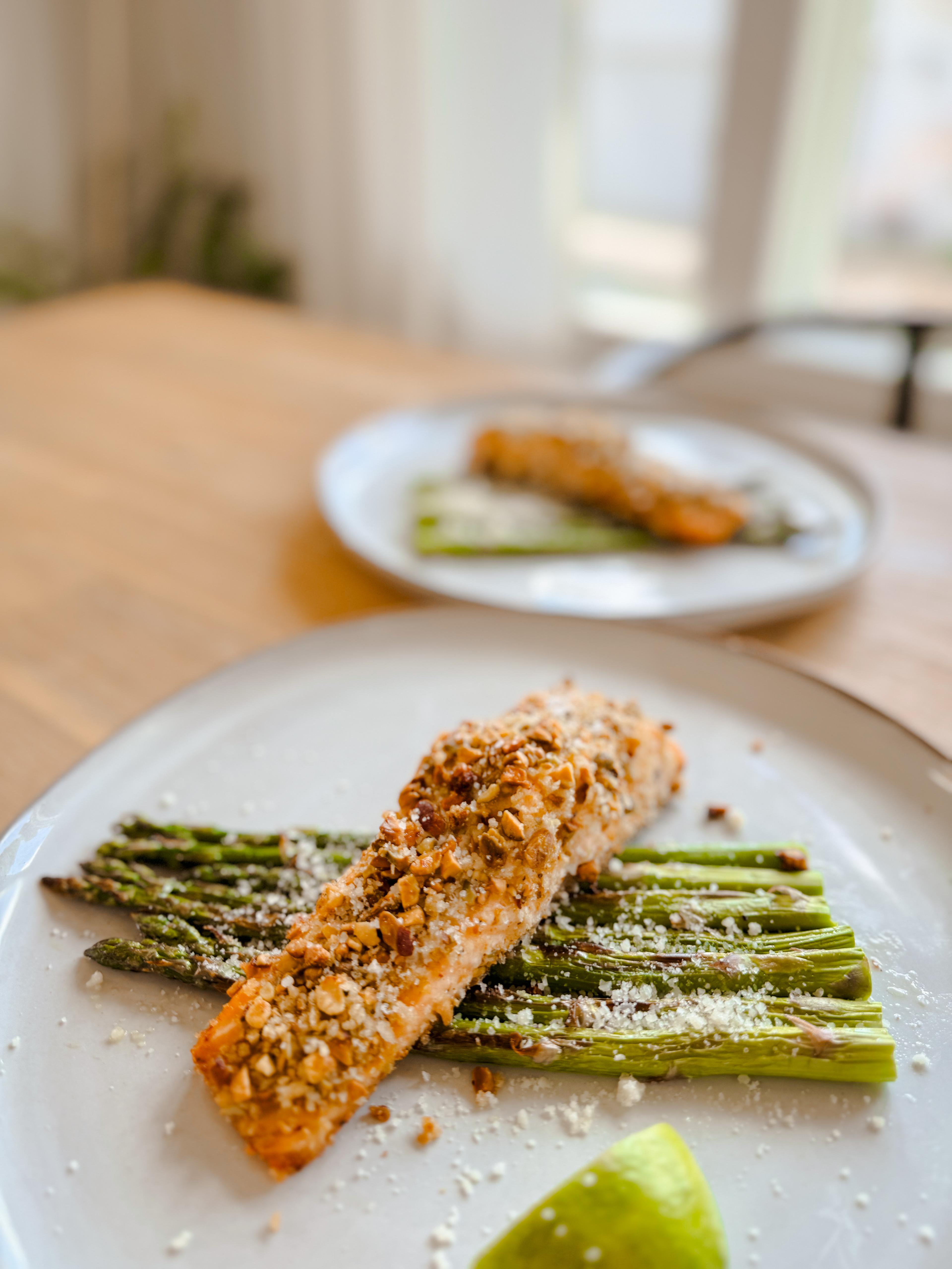 This is a simple and heart-healthy recipe perfect for family weeknight dinners. The dish features salmon brushed with a mixture of Dijon mustard and honey that sticks the rich breading of panko breadcrumbs and pistachios.