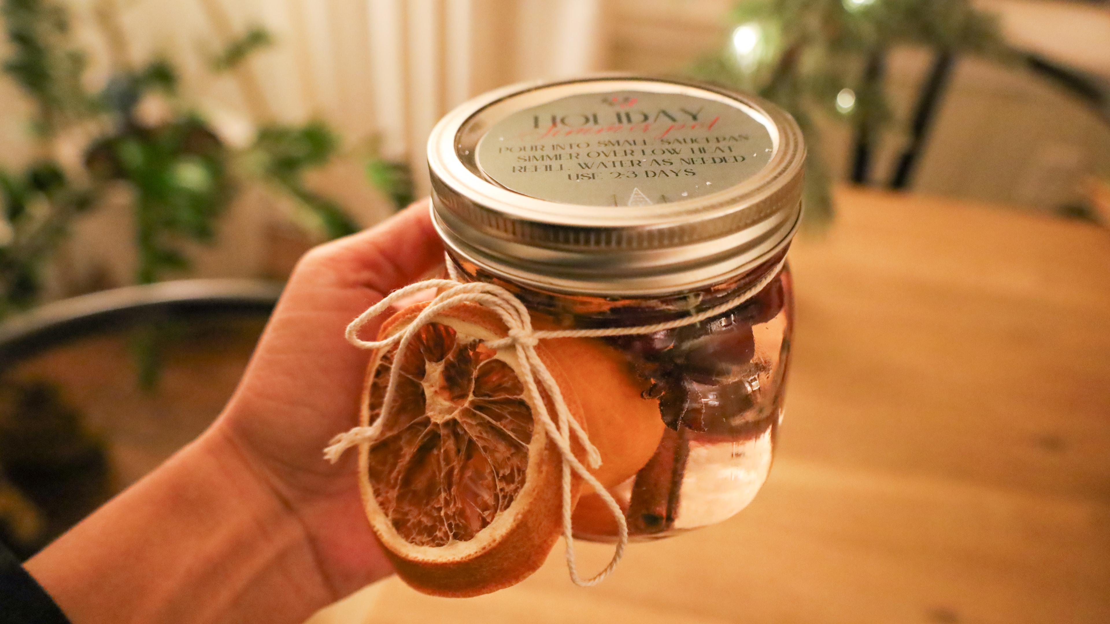 A simmer pot mason jar is easy to make, affordable and aromatic. It’s a way to share warmth and comfort with friends or family, especially during the cooler months. Start by selecting fragrant, natural ingredients like dried oranges, cinnamon sticks, whole cloves, star anise and a few sprigs of fresh rosemary or pine needles. Add dried cranberries for a pop of color. Complete the gift with a small card with instructions on how to use the gift and tie a ribbon or twine around the jar to make it festive.