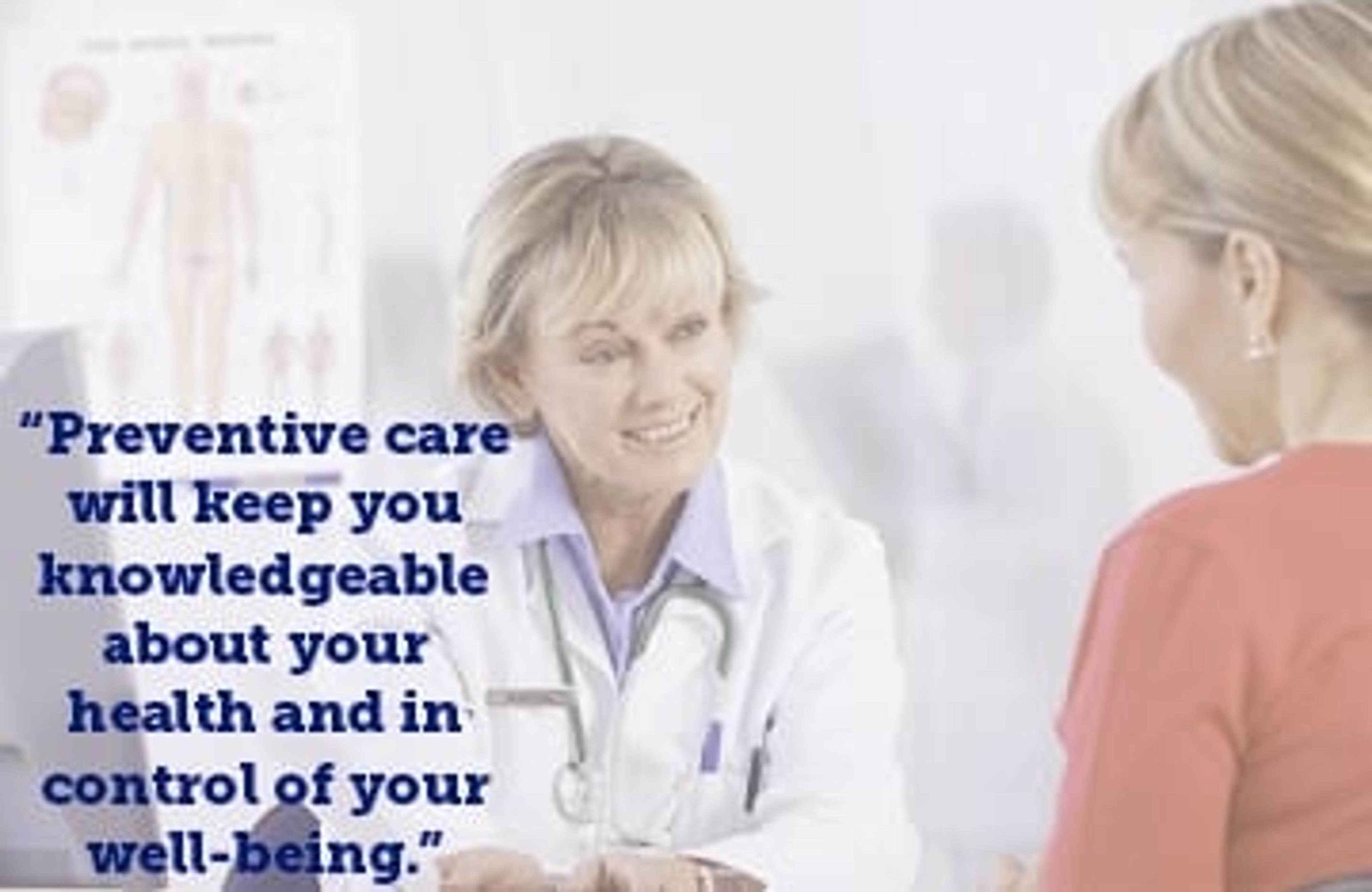 In addition to keeping you well, preventive care is financially sound too. Any major medical expense for a treatable disease or illness will far exceed the cost of regular check-ups. Preventive care will keep you knowledgeable about your health and in control of your well-being, which will reduce stress and enable a longer, healthier life.