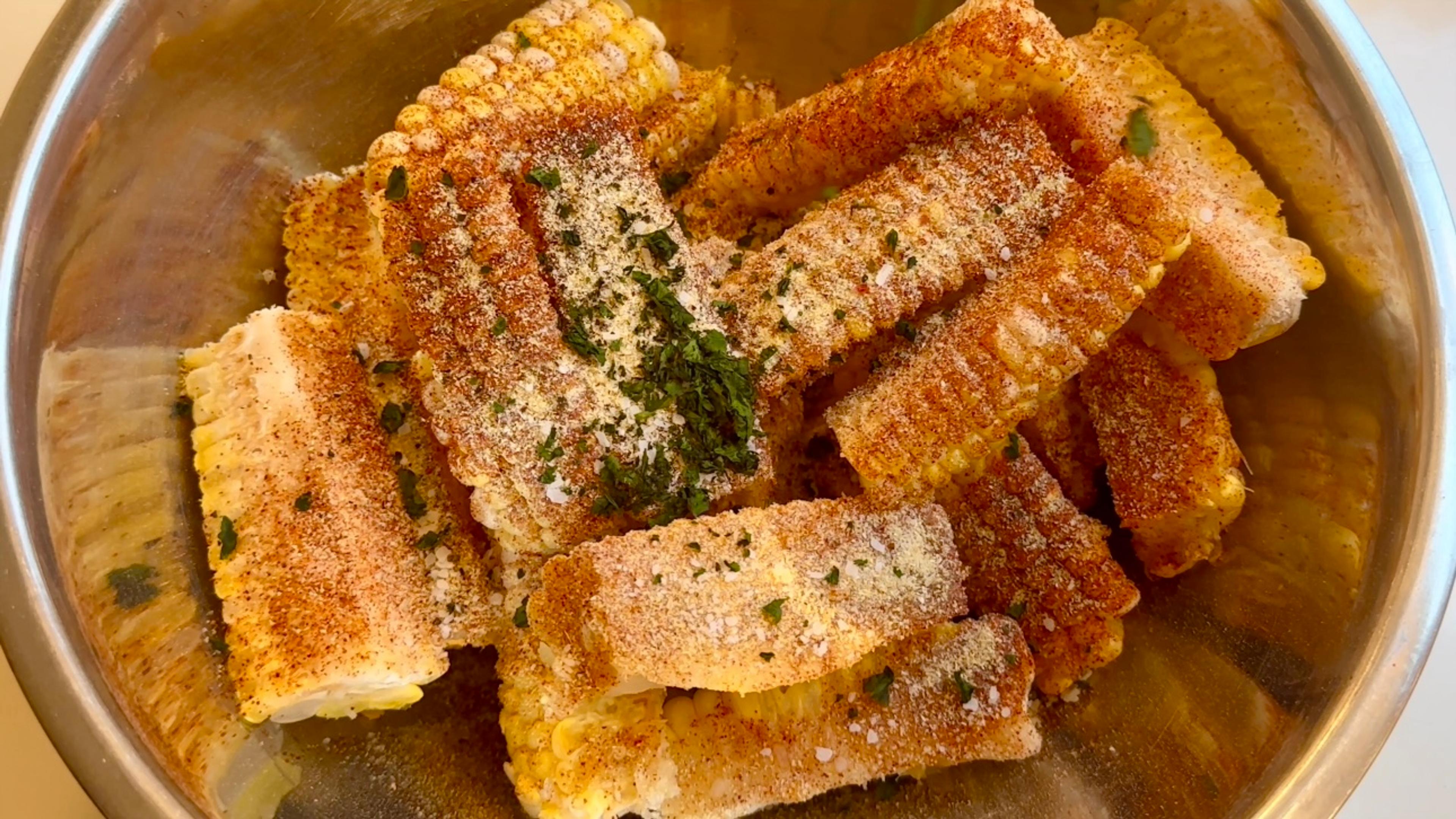 In a large bowl, toss corn ribs with olive oil, spices and salt.