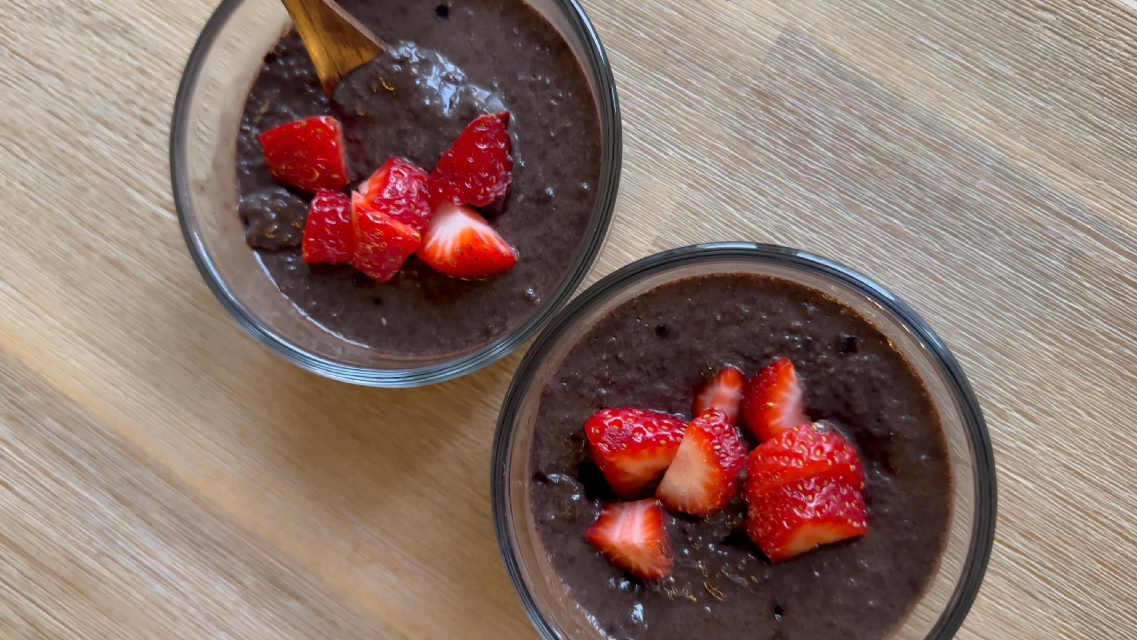 Dark Chocolate Chia Seed Pudding with Strawberries
