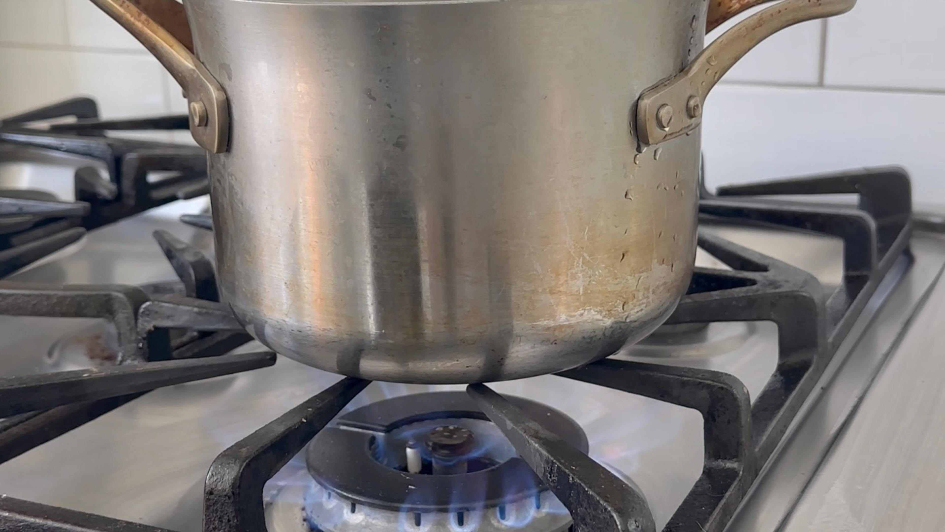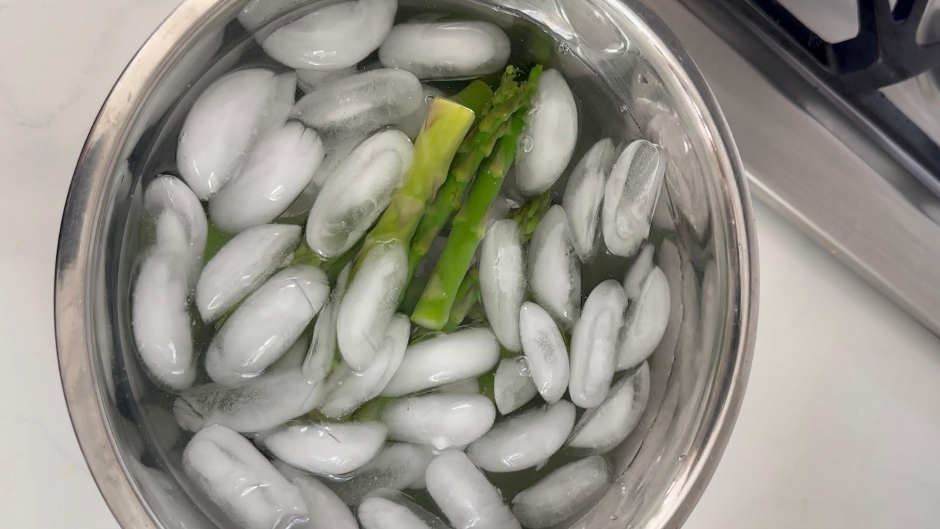 Once boiled, move to an ice bath using tongs. You can use the same water for both veggies.