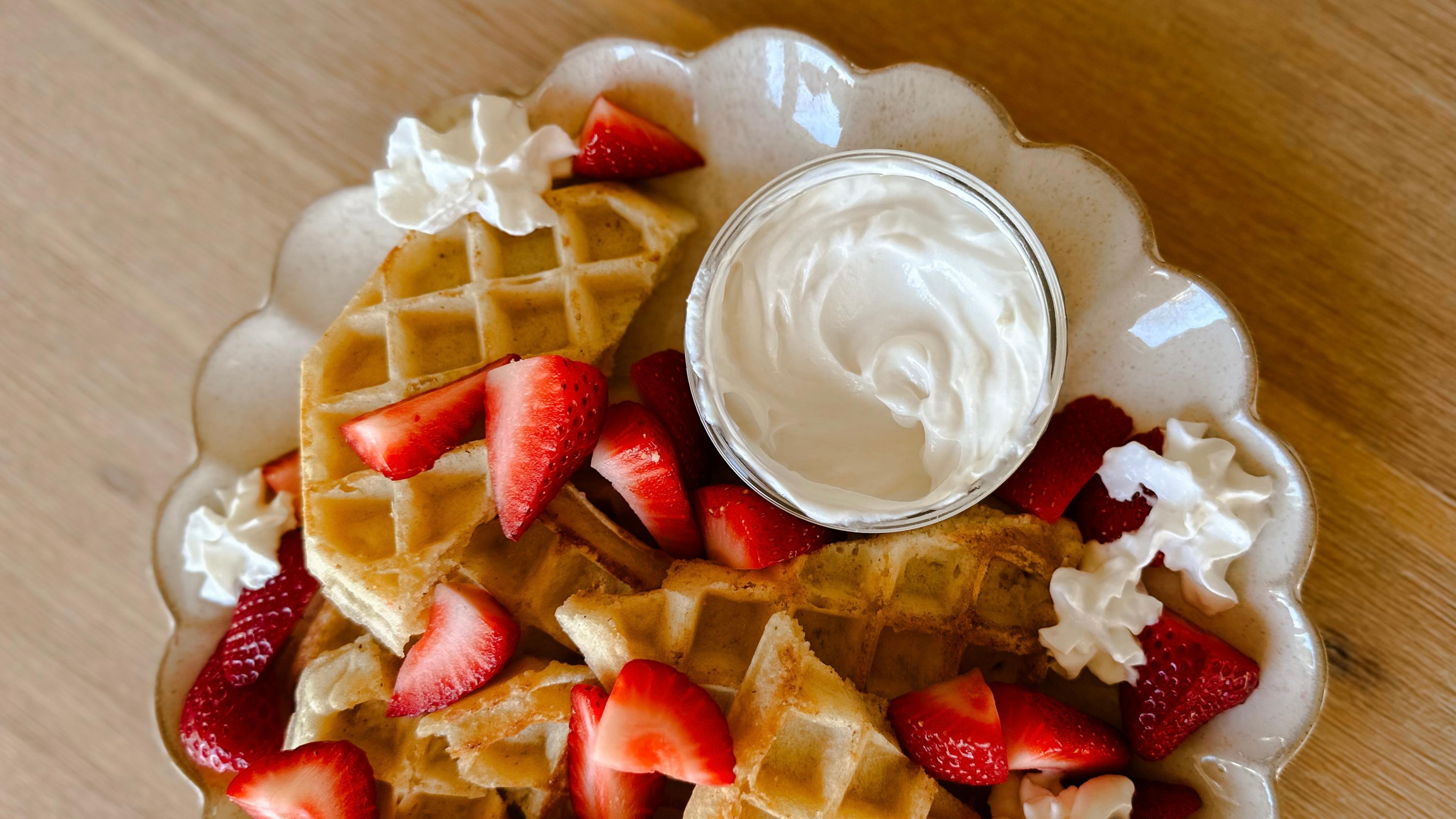 Waffles are a classic celebratory breakfast. Their health value can be elevated by skipping the syrup, making them whole grain, topping them with fresh strawberries and a light creamy topping. This healthier twist on a traditional favorite will satisfies the sweet tooth while providing fiber and nutrients. Serving them with a creamy Greek yogurt sauce sweetened with maple syrup and flavored with vanilla extract adds a bit of protein, calcium and vitamin D.